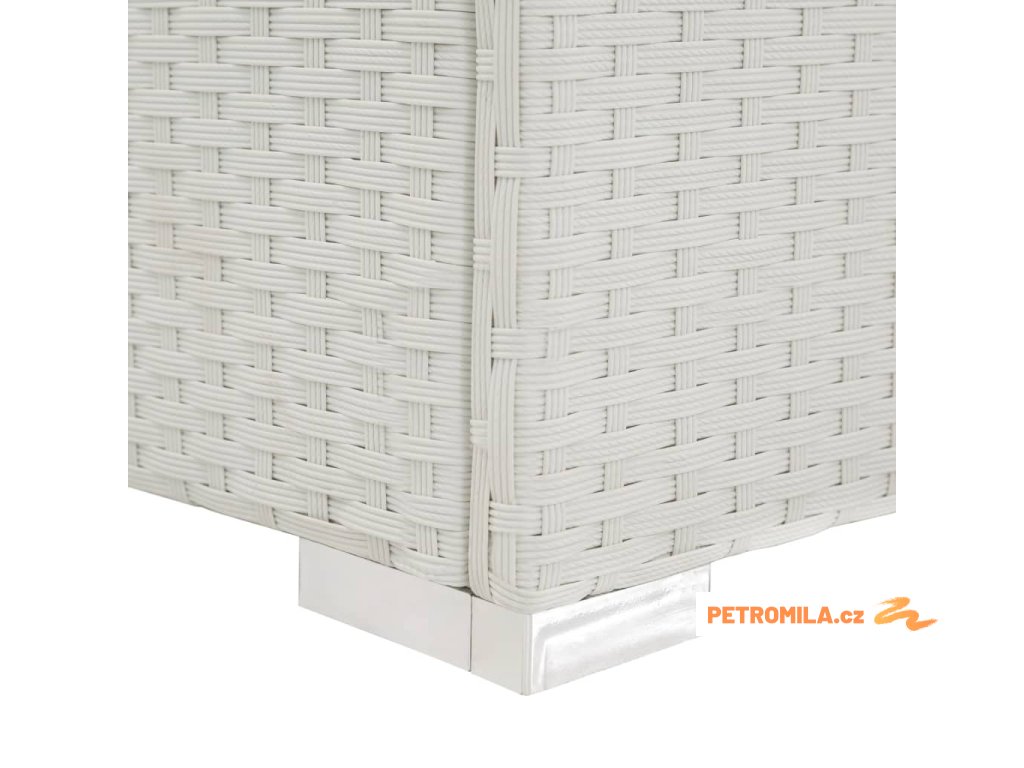- Materiál: PE ratan, práškově lakovaná ocel, tkanina (100% polyester), plast potažený hliníkem
