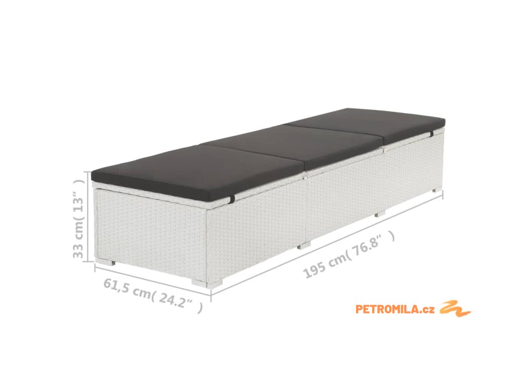 Zahradní lehátko s černou poduškou polyratan bílé