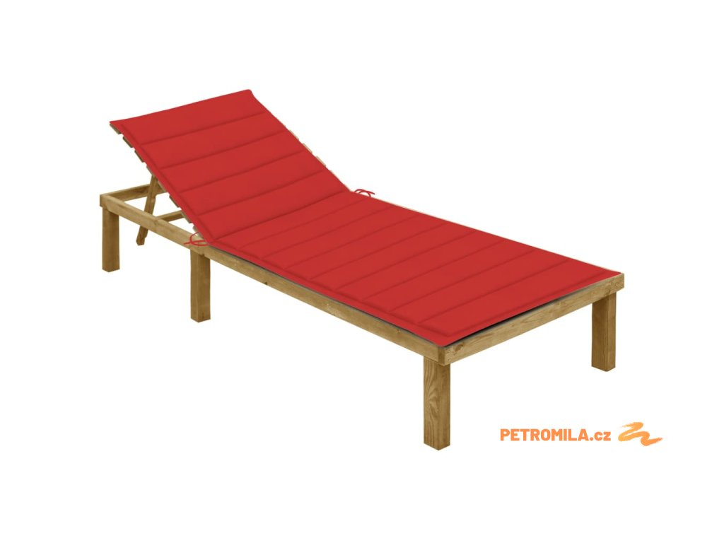 Zahradní lehátko s červenou poduškou impregnované borové dřevo