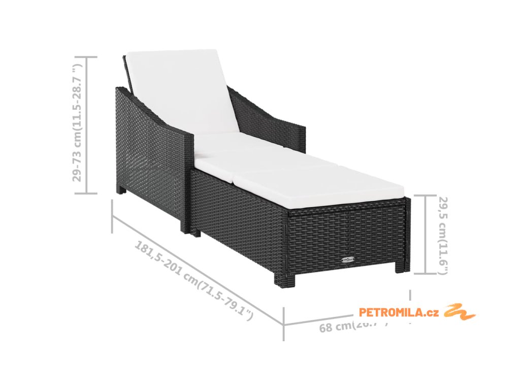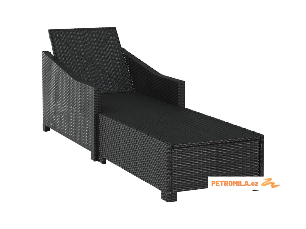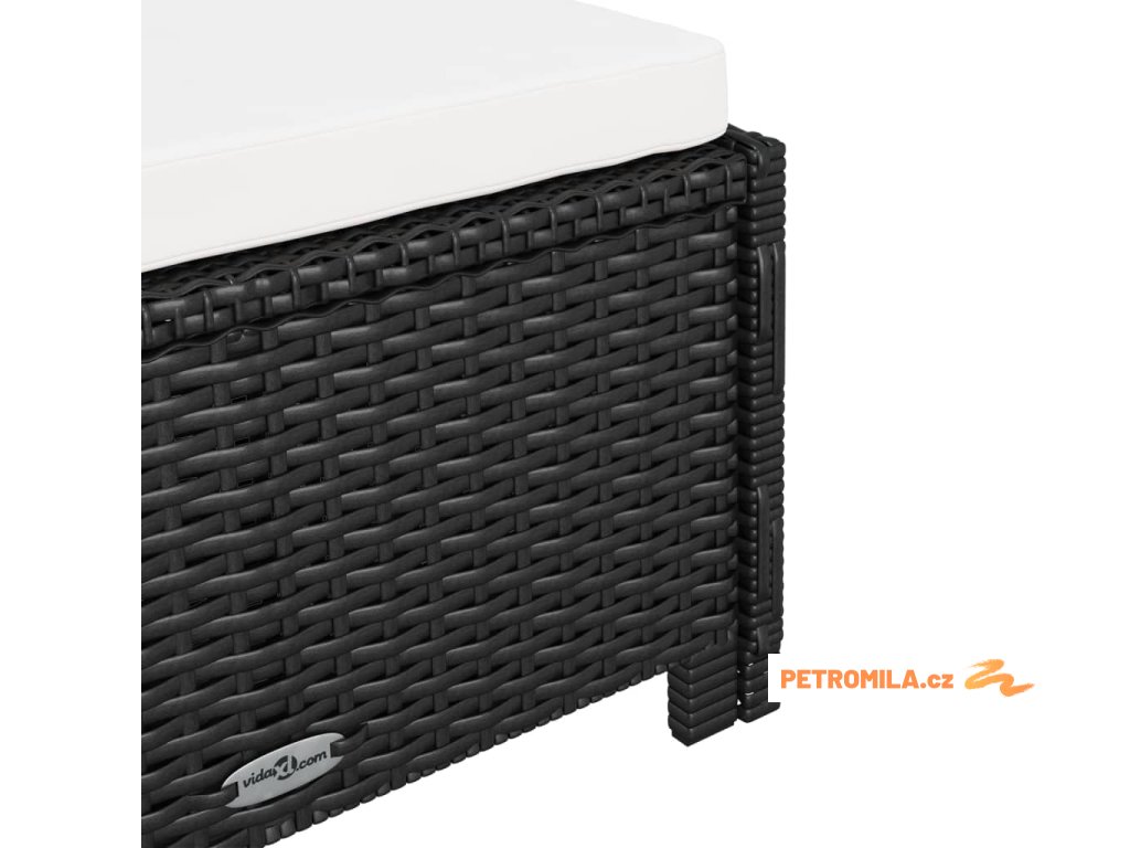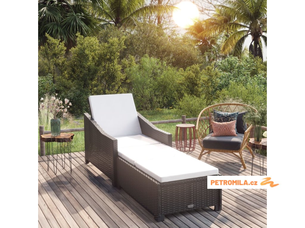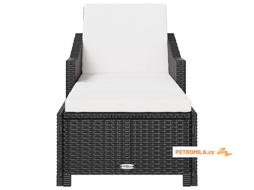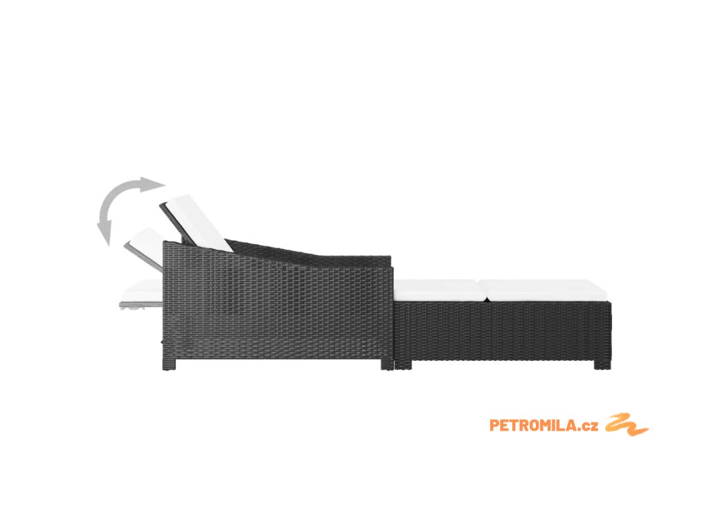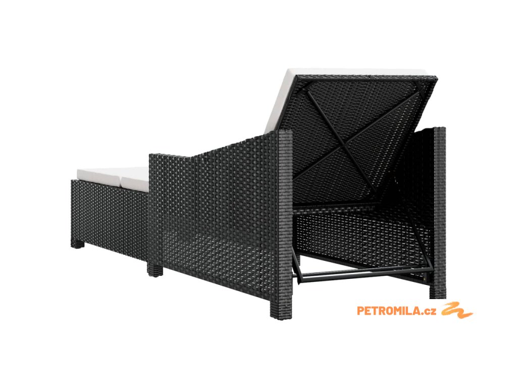 Zahradní lehátko s krémově bílou poduškou polyratan černé