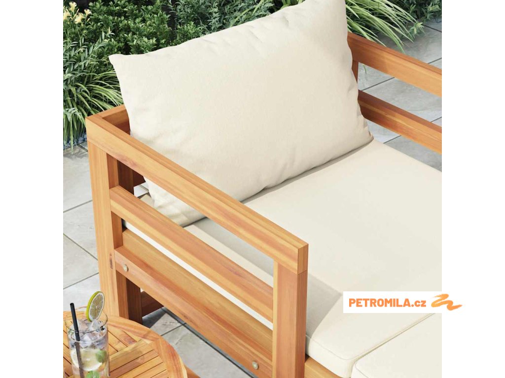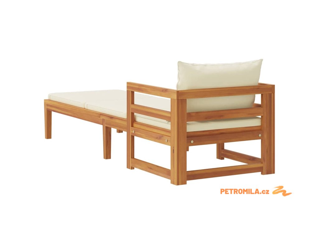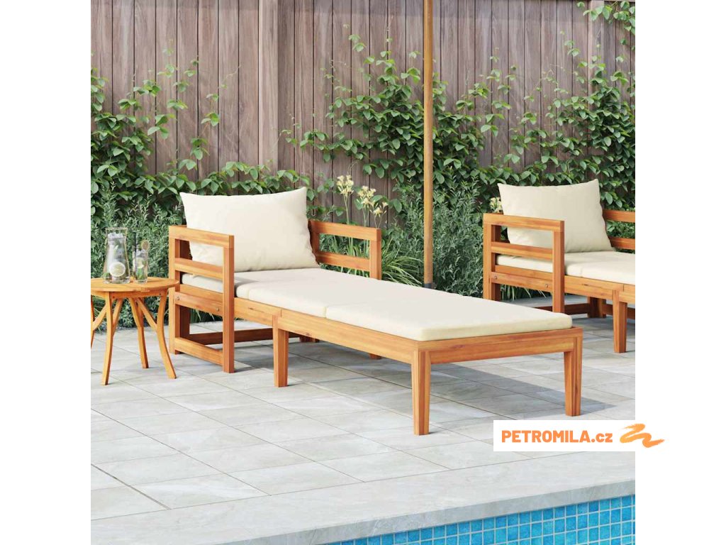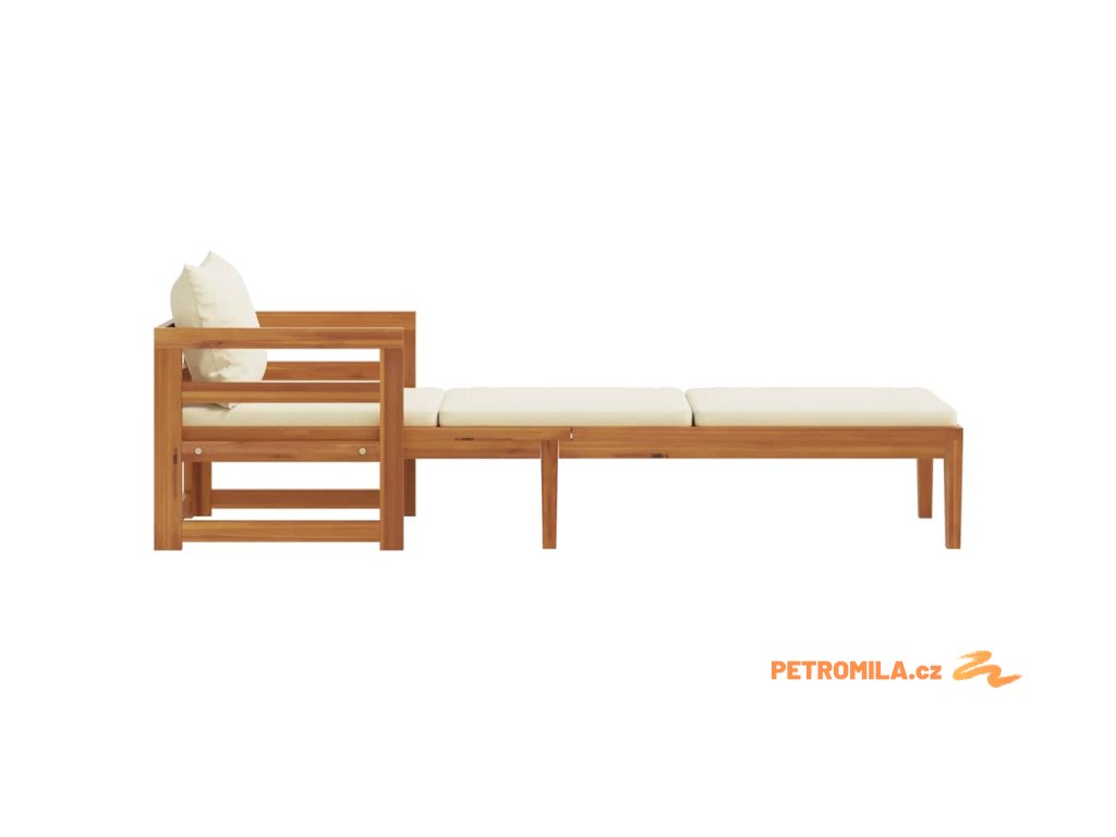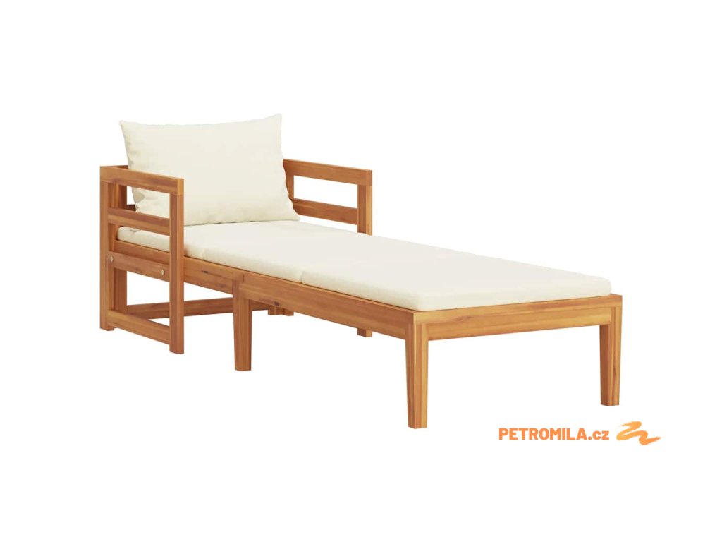 Zahradní lehátko s krémově bílými poduškami masivní akácie