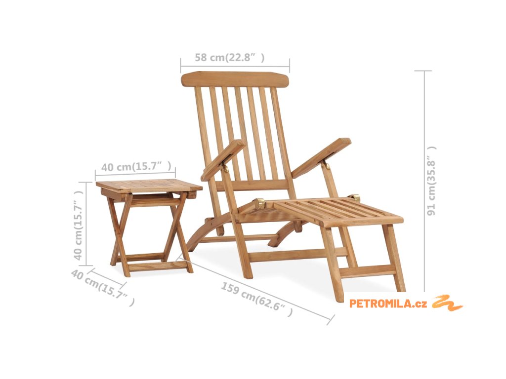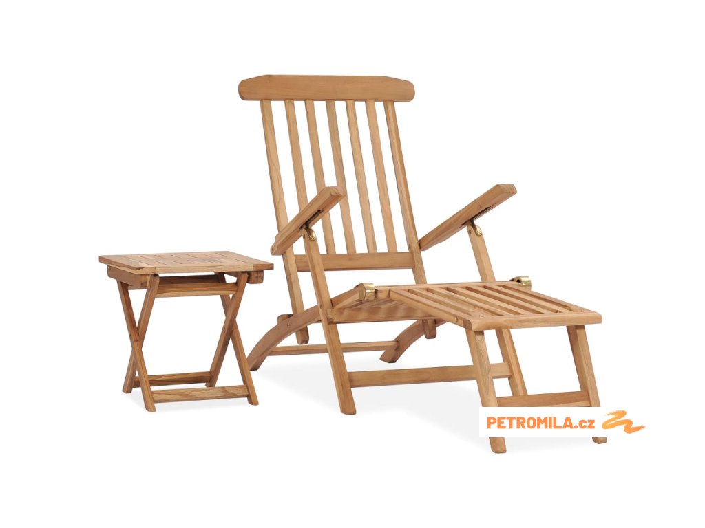 Zahradní lehátko s podnožkou a stolkem masivní teakové dřevo