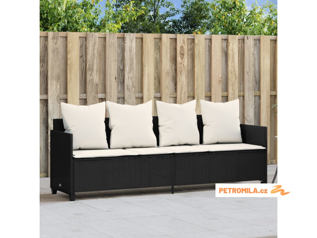 Zahradní lehátko s poduškami černé polyratan