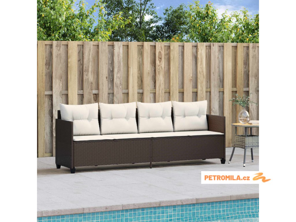 Zahradní lehátko s poduškami hnědé polyratan