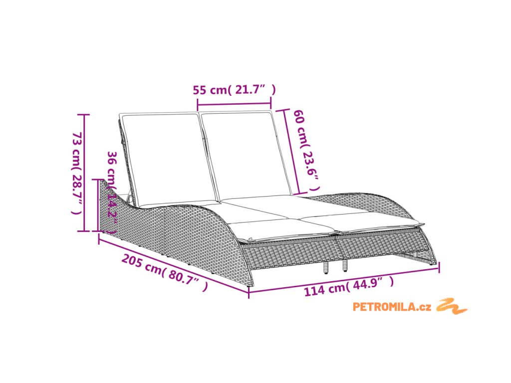 Zahradní lehátko s poduškami hnědé 114 x 205 x 73 cm polyratan