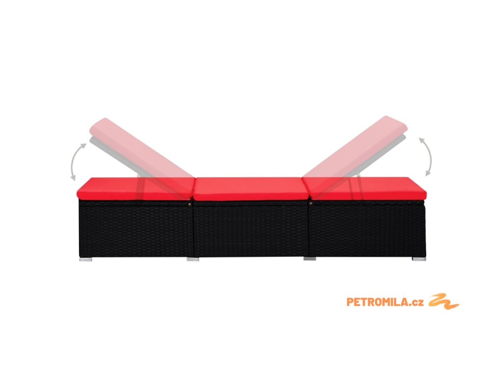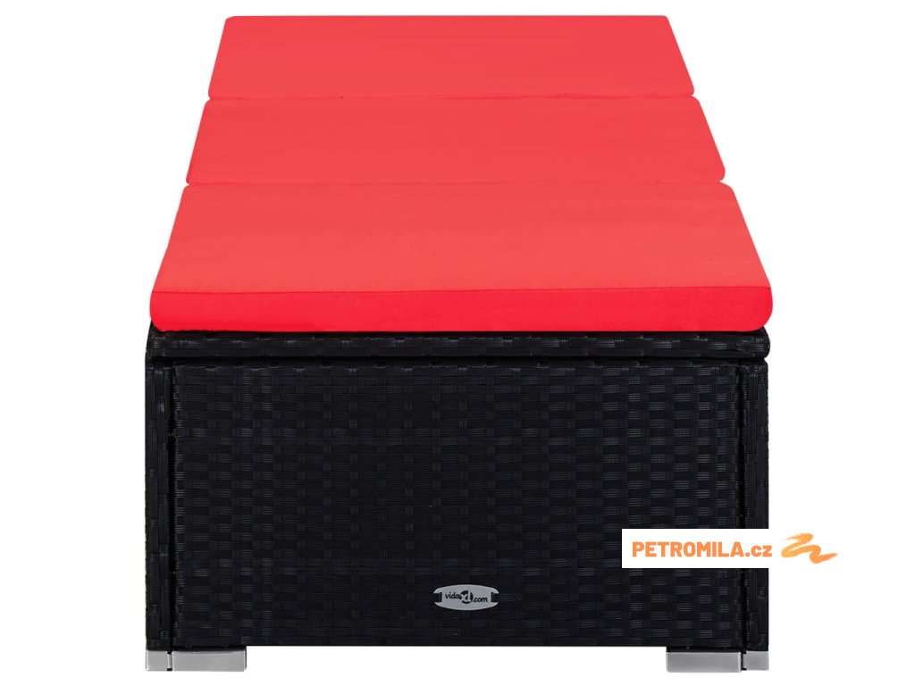 Zahradní lehátko s poduškou a čajovým stolkem polyratan červené