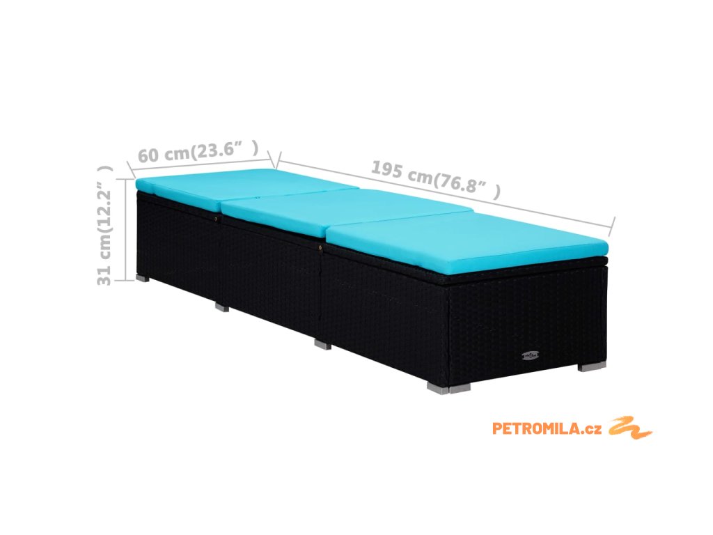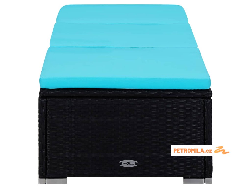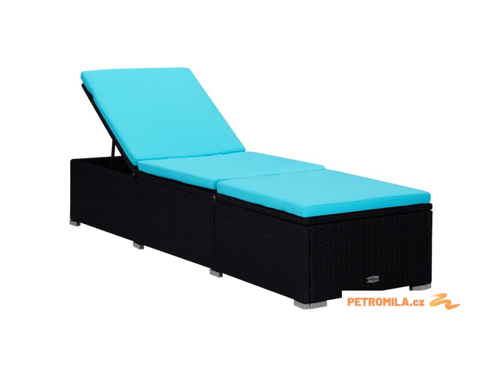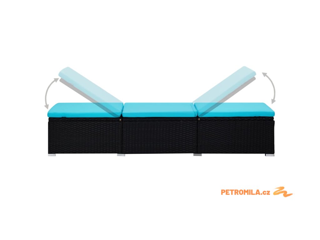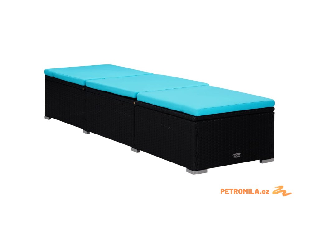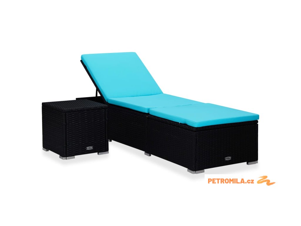 Zahradní lehátko s poduškou a čajovým stolkem polyratan modré