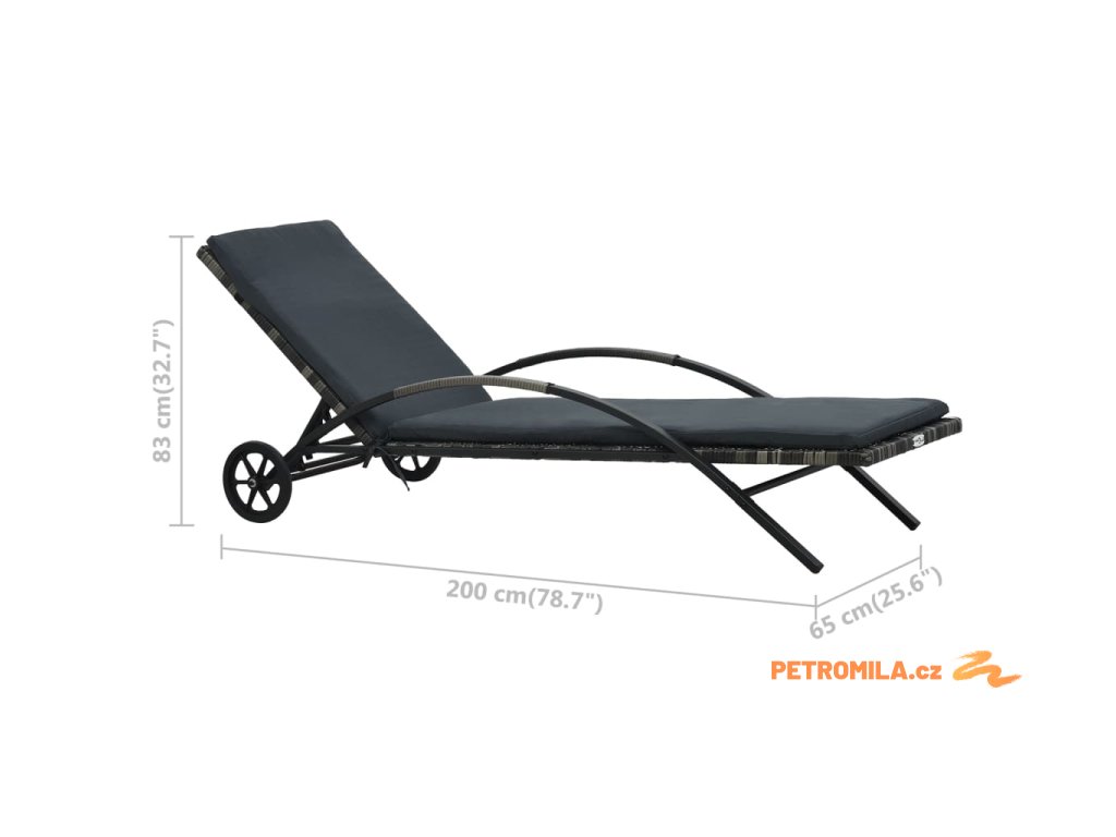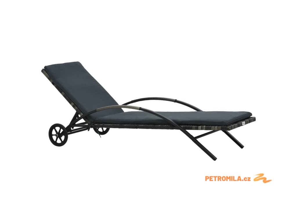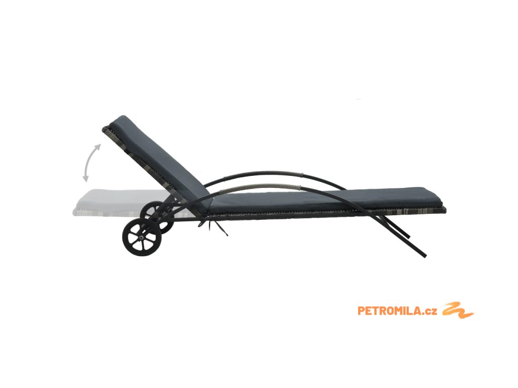 Zahradní lehátko s poduškou a kolečky polyratan antracitové