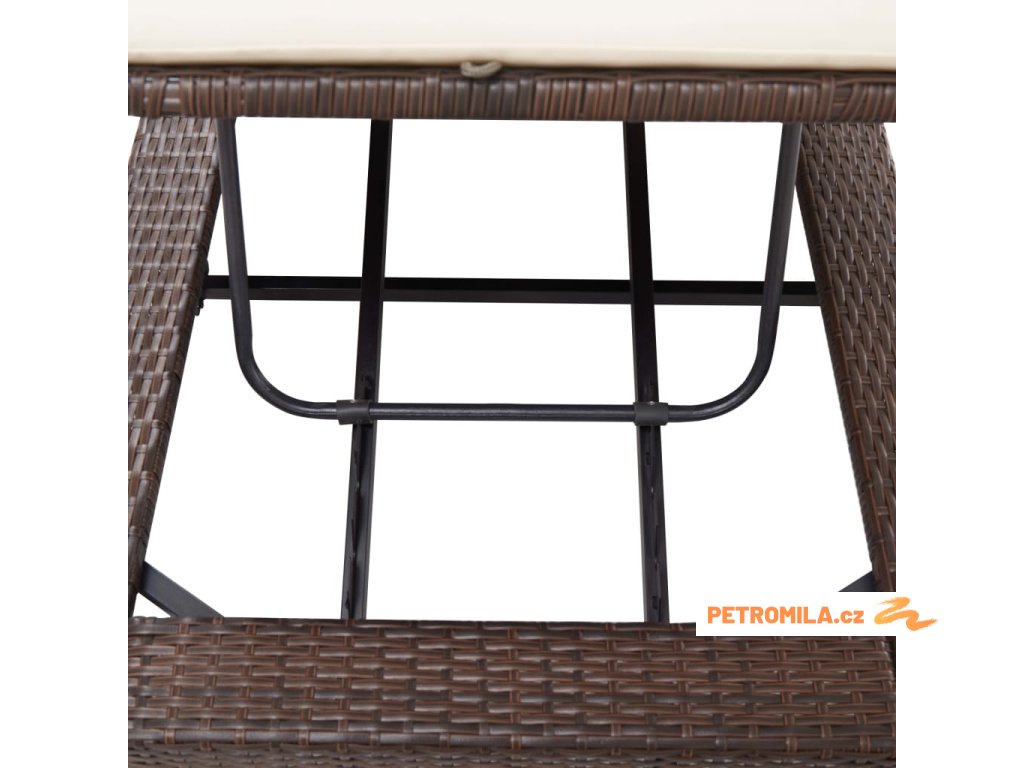 Lehátko z PE ratanu, který je odolný vůči povětrnostním vlivům, se snadno čistí a dobře odolává opotřebení, takže je vhodné pro každodenní používání. Lehátko má robustní rám z oceli s práškovým nástřikem, který je velmi stabilní a je zárukou dlouhé životnosti. Oba konce lehátka lze vytáhnout a nastavit do různých poloh pro tu nejpohodlnější polohu v sedě či v leže. Silně polstrovaná poduška poskytuje maximální pohodlí a dodatečnou podporu. Povlaky podušek jsou vybavené zipem, takže je lze sundat a snadno vyprat. Balení obsahuje 1 lehátko a 1 velkou podušku na sedák.