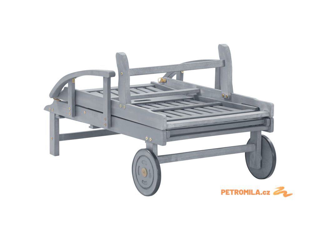 Toto zahradní lehátko je vyrobené z masivního akáciového dřeva s šedou povrchovou úpravou, takže je robustní a stabilní. Opěrky zad a nohou jsou polohovatelné a můžete je snadno nastavit do požadované polohy. Toto zahradní lehátko se 2 kolečky snadno přemístíte, kamkoliv potřebujete. Lehátko je vybavené praktickým výsuvným stolkem, na který můžete položit telefon, sluneční brýle, pití a další drobné předměty. Polštářek přispívá k optimálnímu komfortu během vaší relaxace. Každá poduška je vybavená dvěma páry šňůrek, abyste ji mohli pevně zafixovat k lehátku.