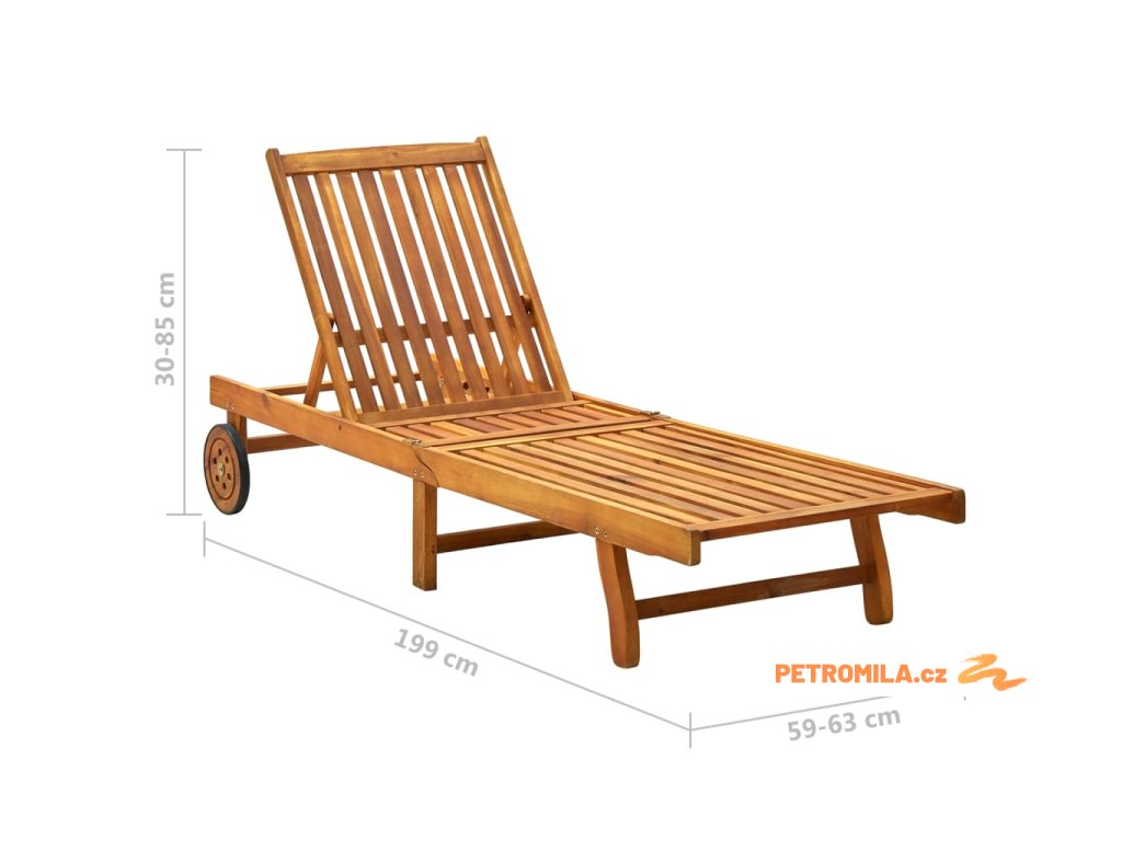 Toto zahradní lehátko je vyrobené z masivního akáciového dřeva, takže je robustní a stabilní. Opěrky zad a nohou jsou polohovatelné a můžete je snadno nastavit do požadované polohy. Toto zahradní lehátko se 2 kolečky snadno přemístíte, kamkoliv potřebujete. Lehátko je vybavené praktickým výsuvným stolkem, na který můžete položit telefon, sluneční brýle, pití a další drobné předměty. Polštářek přispívá k optimálnímu komfortu během vaší relaxace. Každá poduška je vybavená dvěma páry šňůrek, abyste ji mohli pevně zafixovat k lehátku.
