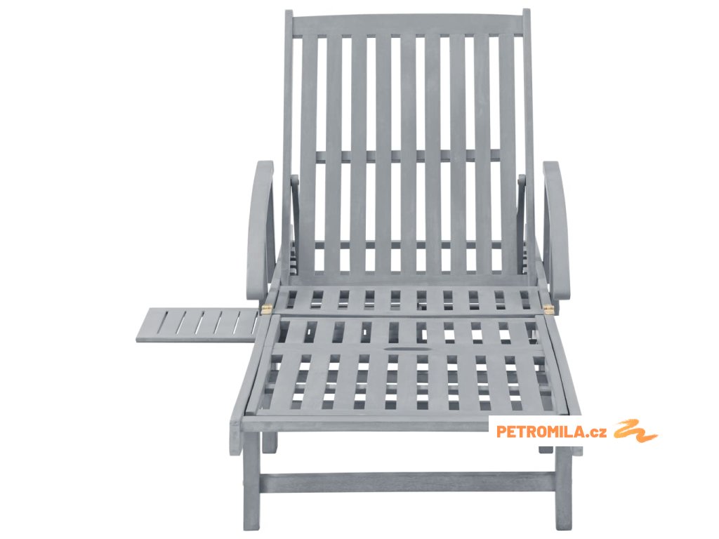 Toto zahradní lehátko je vyrobené z masivního akáciového dřeva s šedou povrchovou úpravou, takže je robustní a stabilní. Opěrky zad a nohou jsou polohovatelné a můžete je snadno nastavit do požadované polohy. Toto zahradní lehátko se 2 kolečky snadno přemístíte, kamkoliv potřebujete. Lehátko je vybavené praktickým výsuvným stolkem, na který můžete položit telefon, sluneční brýle, pití a další drobné předměty. Polštářek přispívá k optimálnímu komfortu během vaší relaxace. Každá poduška je vybavená dvěma páry šňůrek, abyste ji mohli pevně zafixovat k lehátku.
