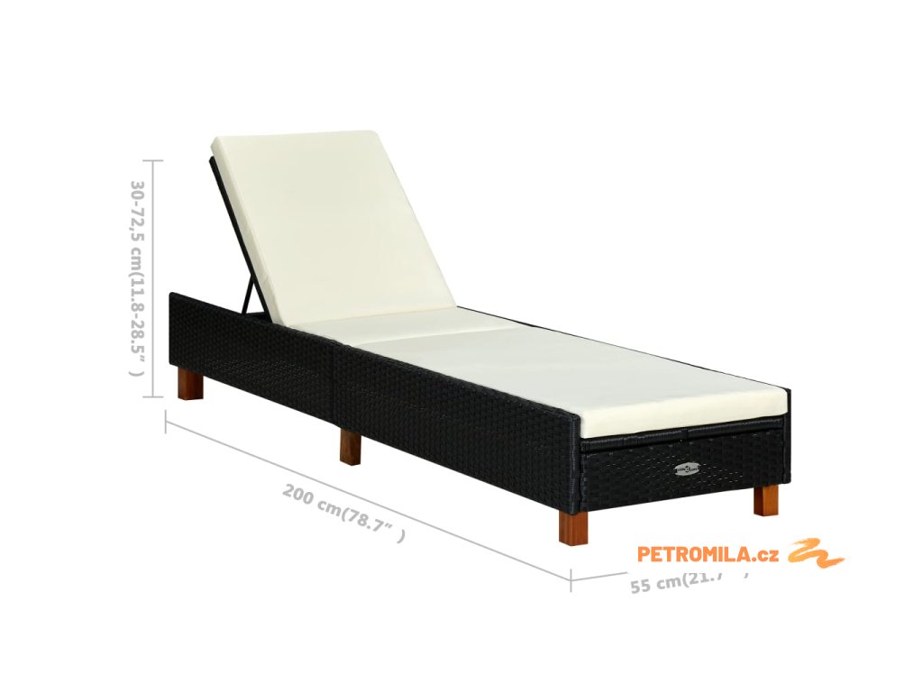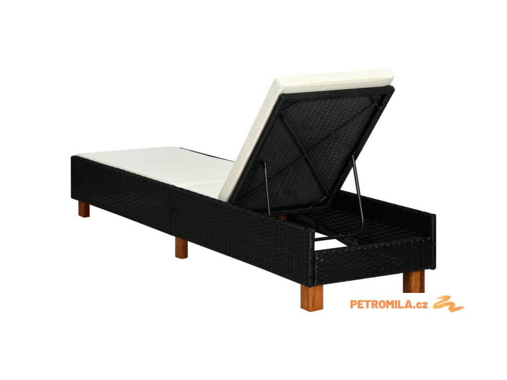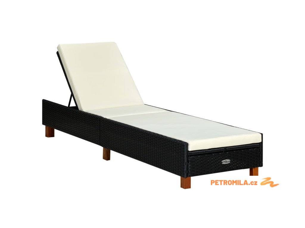 Zahradní lehátko s poduškou polyratan černé