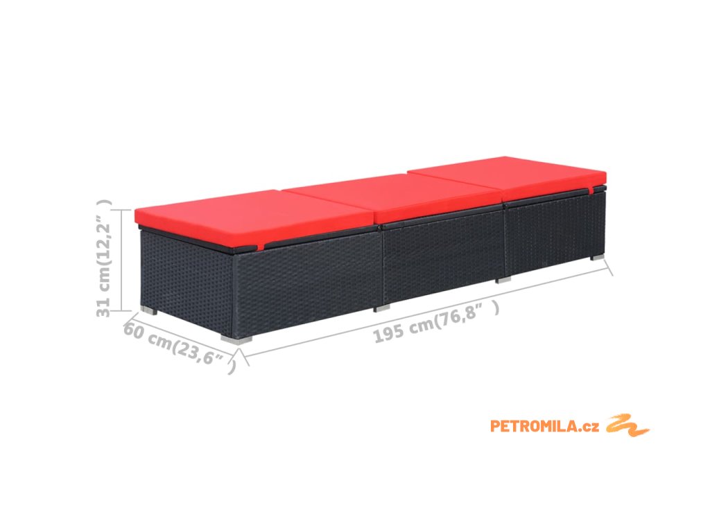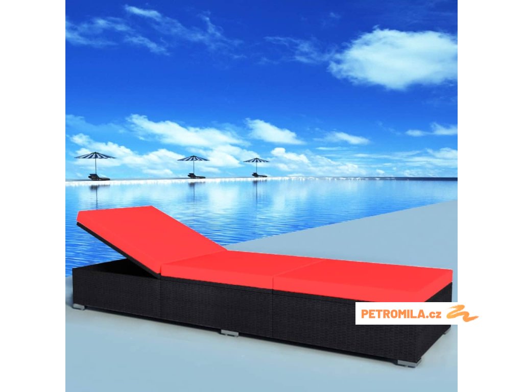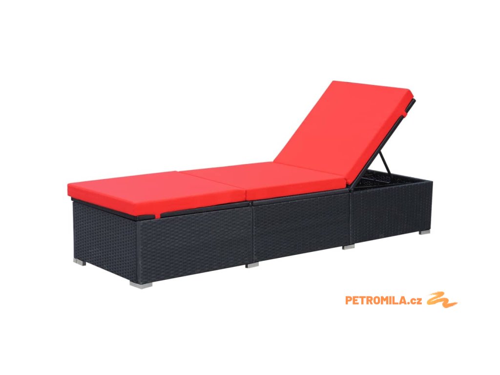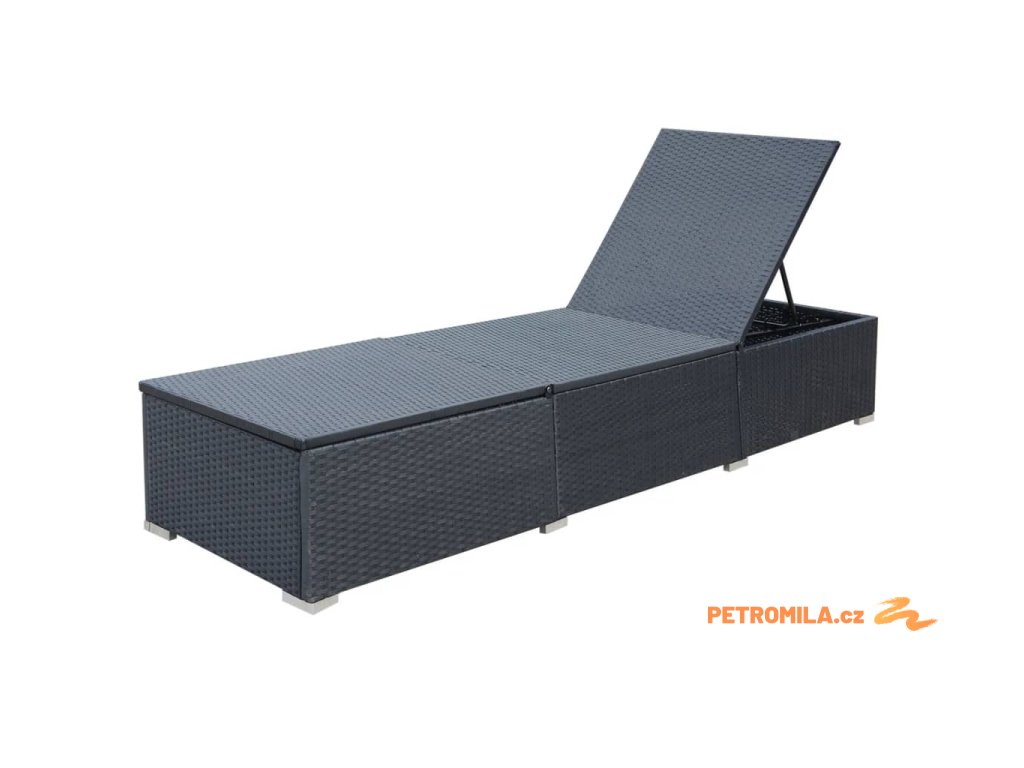 Zahradní lehátko s poduškou polyratan černé