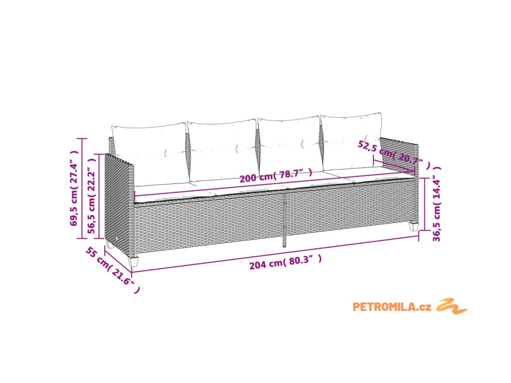 - Rozměry: 204 x 55 x 69,5 cm (Š x H x V)