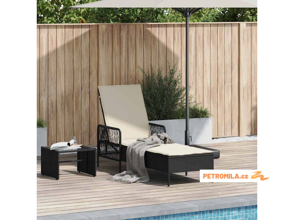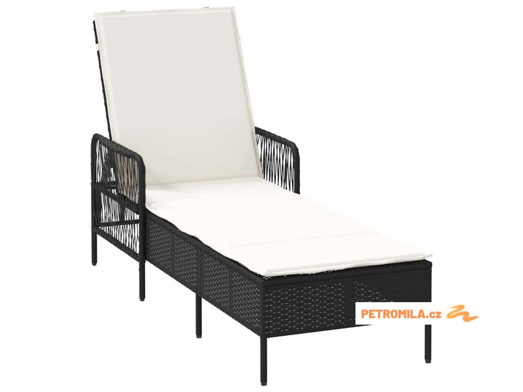 Zahradní lehátko s polštářem Černá 157 x 55 x 92cm polyratan