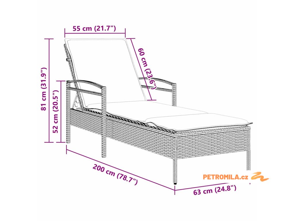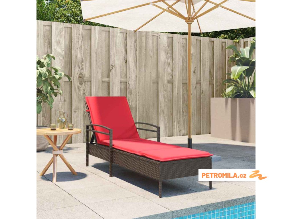 Zahradní lehátko s polštářem hnědé 63 x 200 x 81 cm polyratan (pouze pro USA)