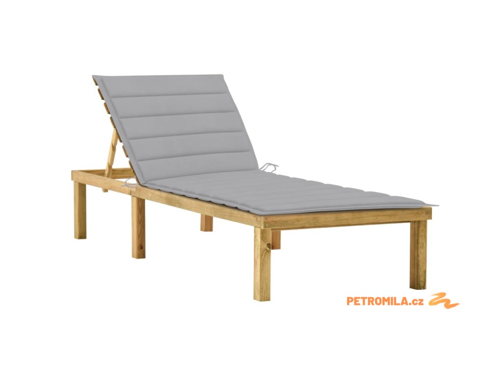 Zahradní lehátko s šedou poduškou impregnované borové dřevo