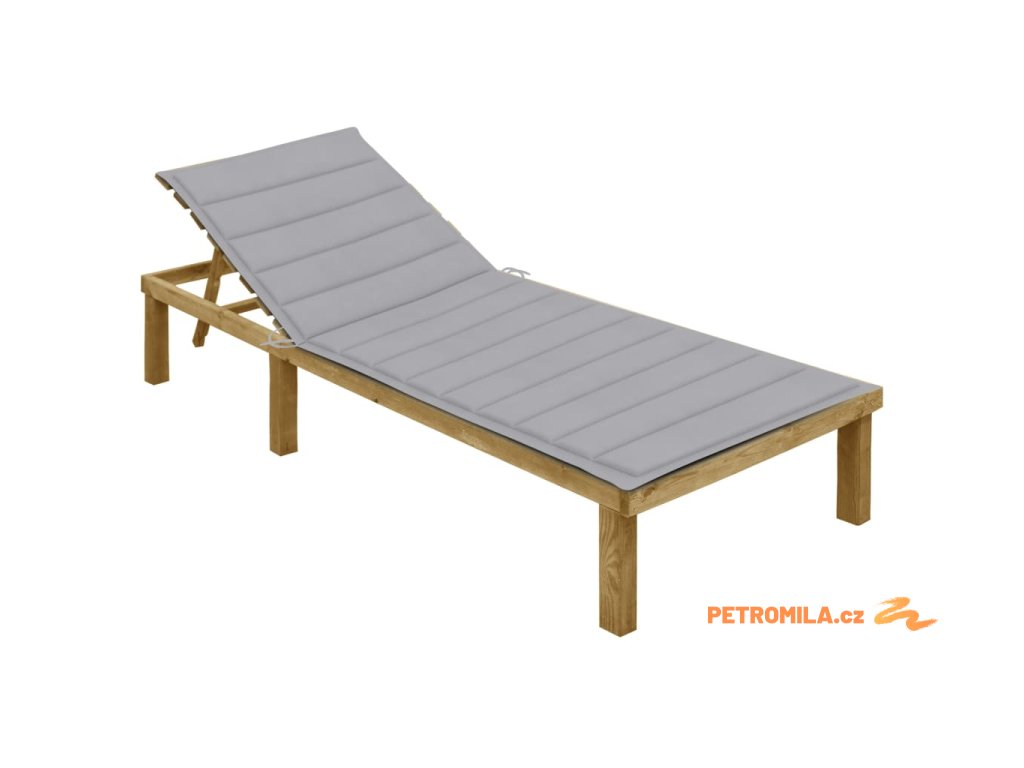 Zahradní lehátko s šedou poduškou impregnované borové dřevo