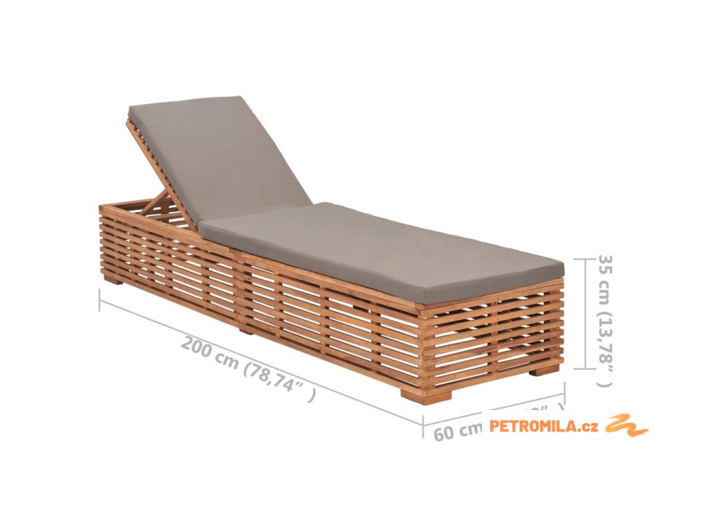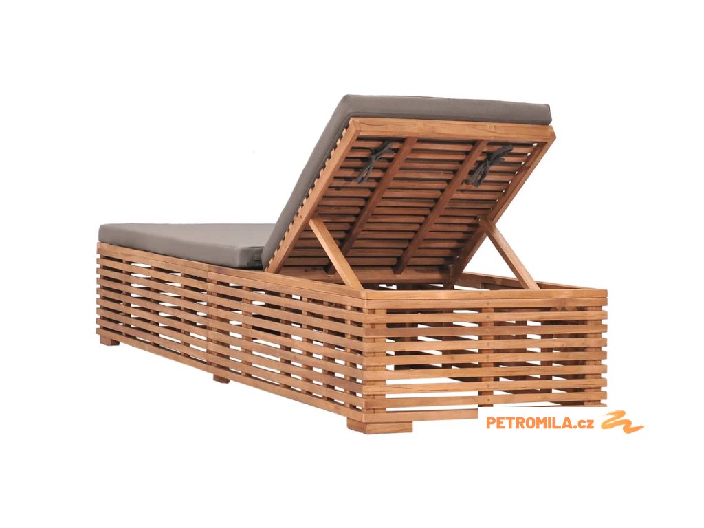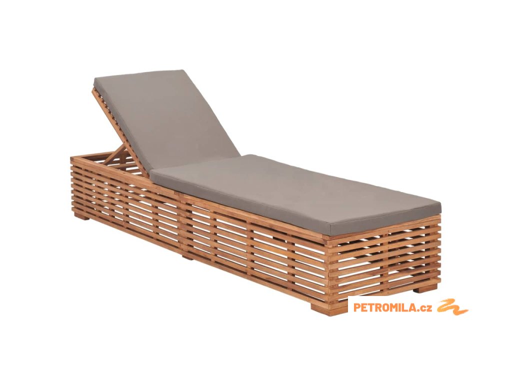 Zahradní lehátko s tmavě šedou poduškou masivní teak