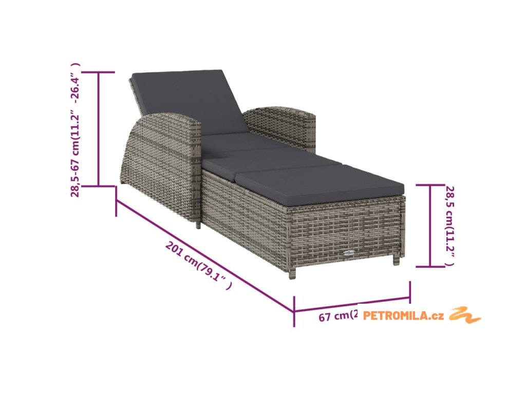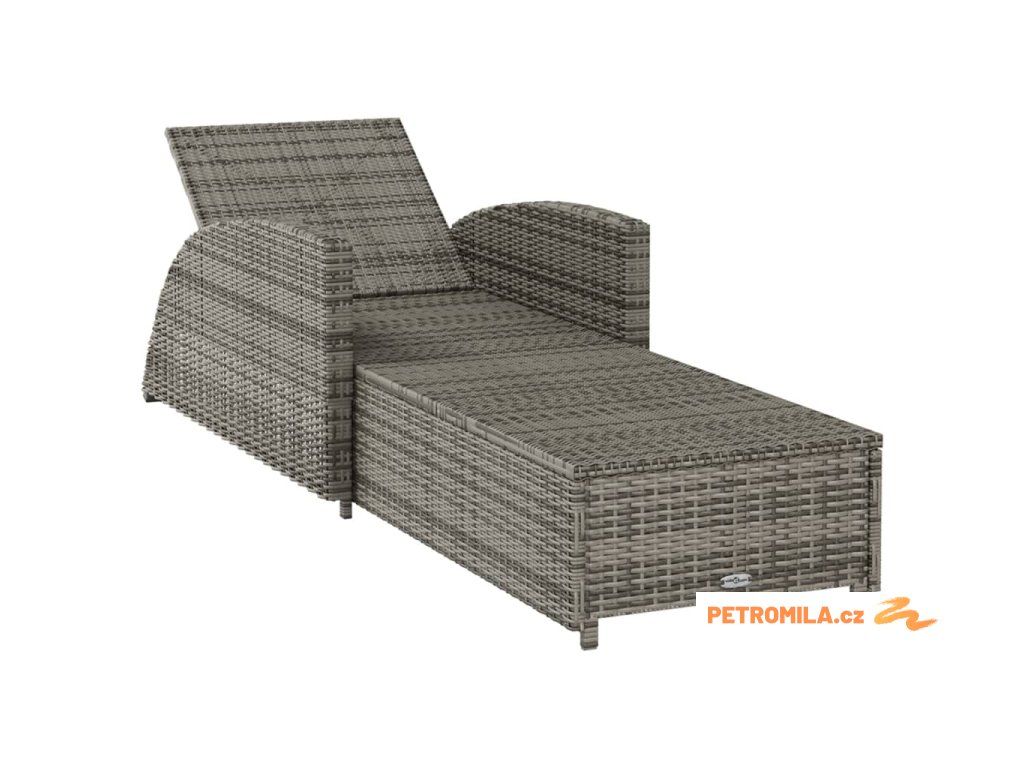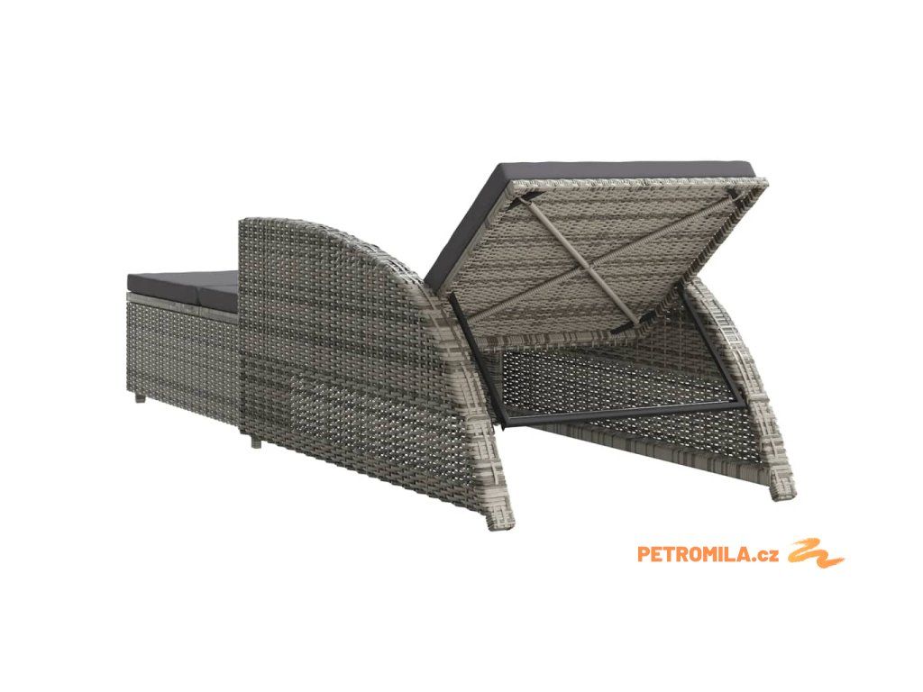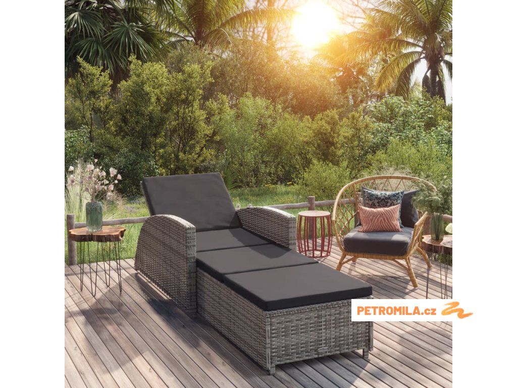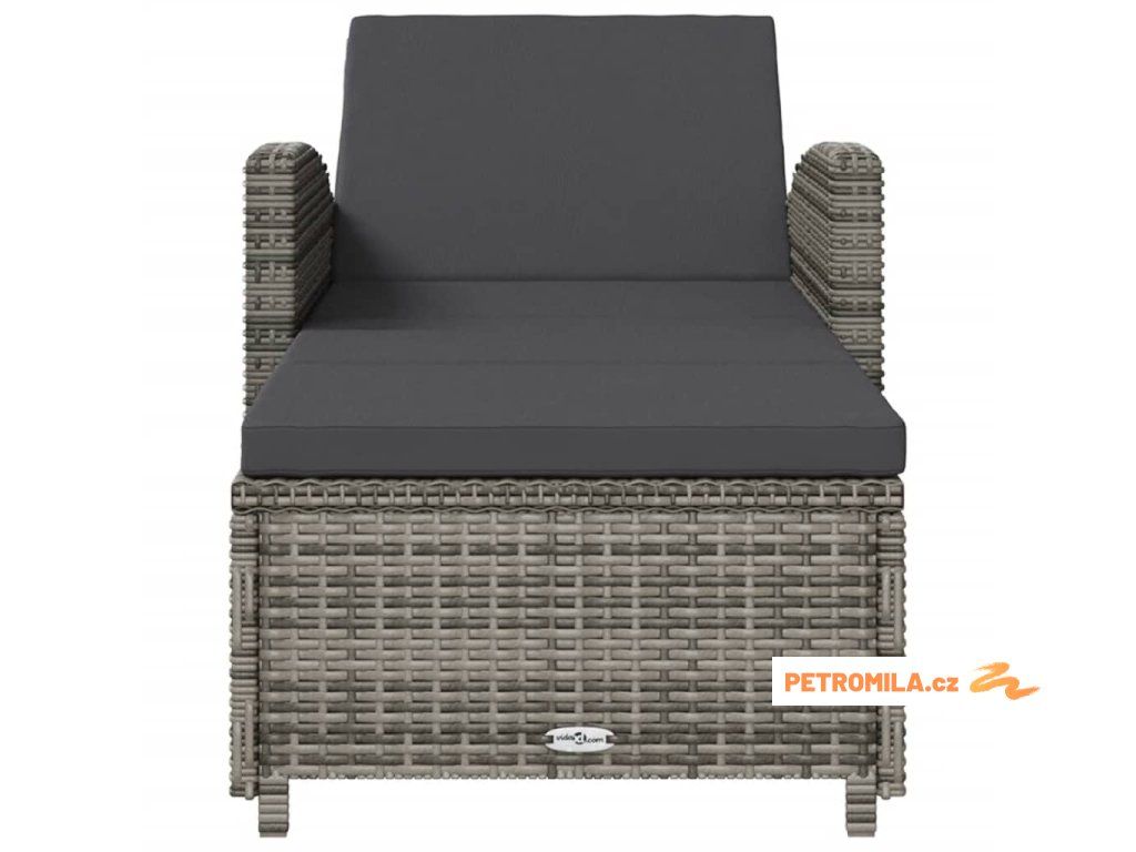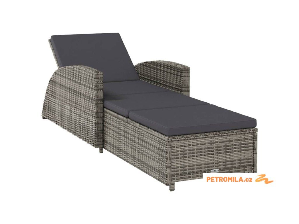 Zahradní lehátko s tmavě šedou poduškou polyratan šedé
