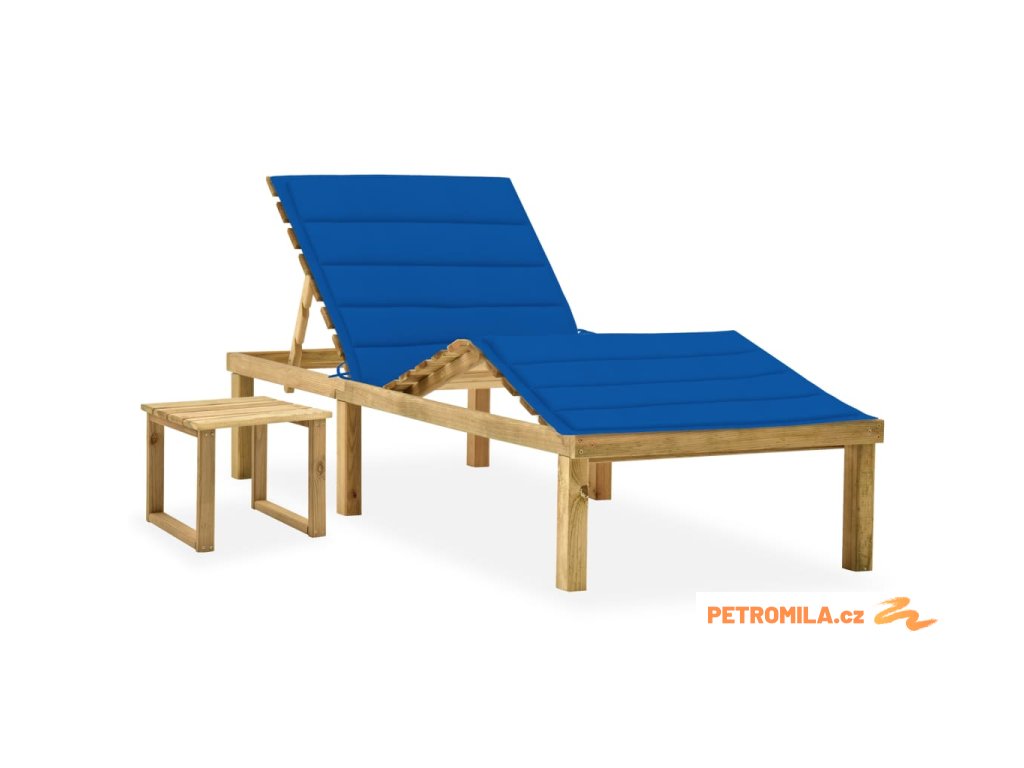 Zahradní lehátko se stolkem a poduškou impregnovaná borovice