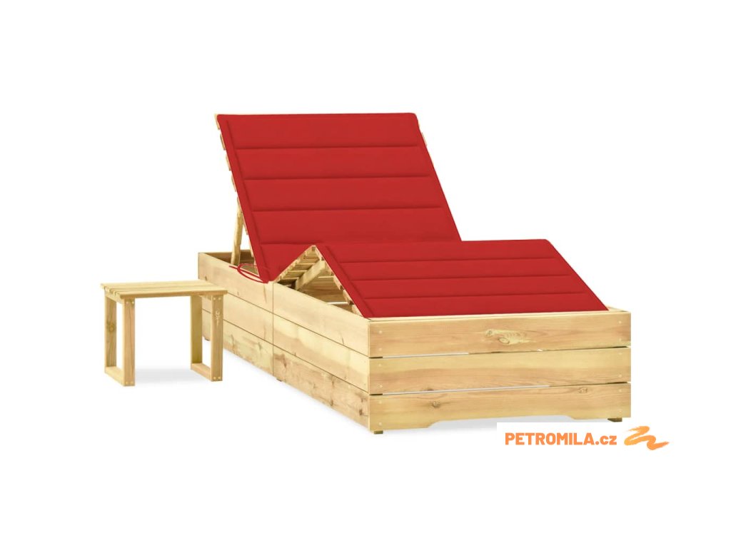 Zahradní lehátko se stolkem a poduškou impregnovaná borovice