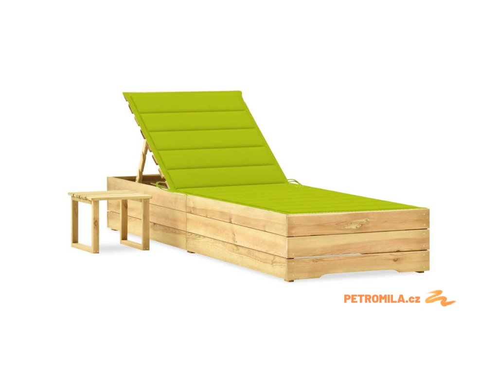 Zahradní lehátko se stolkem a poduškou impregnovaná borovice