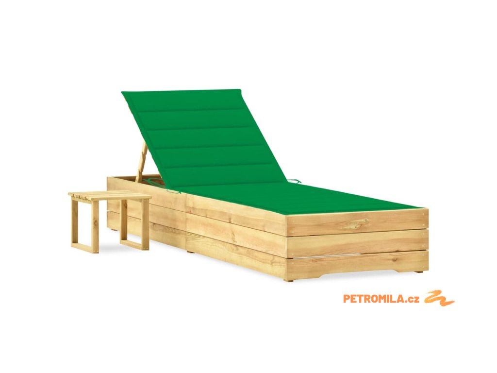 Zahradní lehátko se stolkem a poduškou impregnovaná borovice