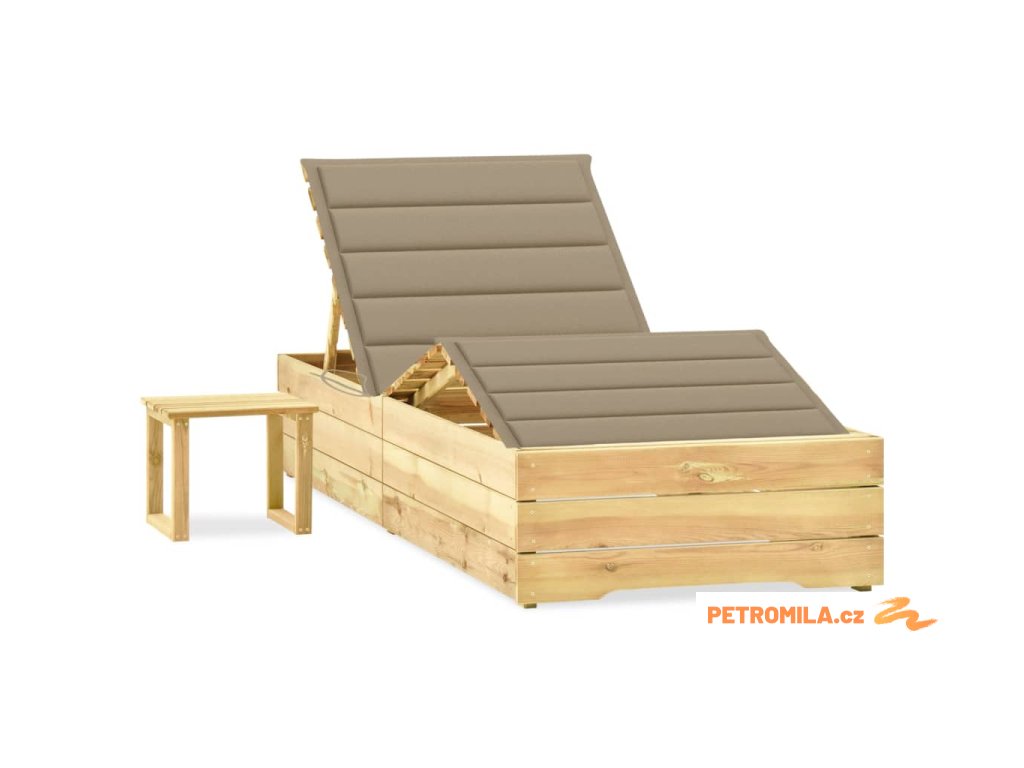 Zahradní lehátko se stolkem a poduškou impregnovaná borovice