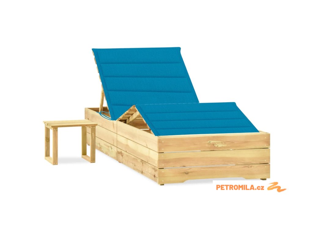 Zahradní lehátko se stolkem a poduškou impregnovaná borovice