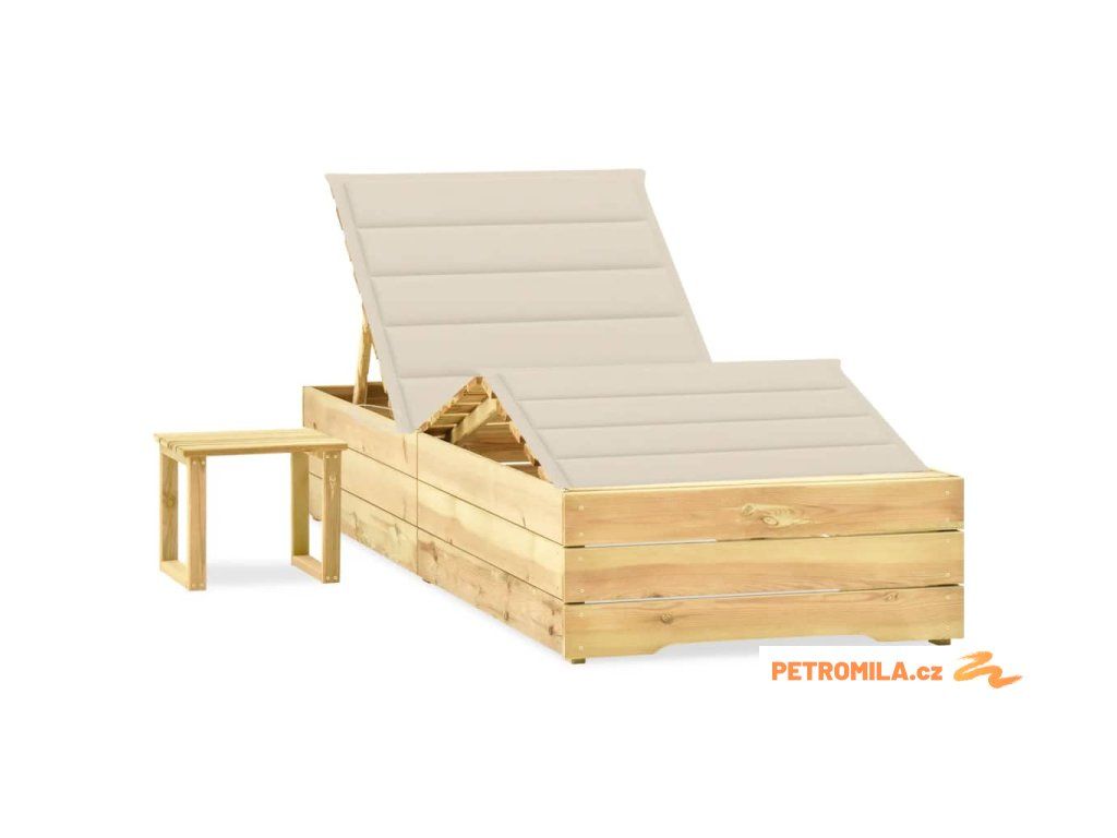 Zahradní lehátko se stolkem a poduškou impregnovaná borovice