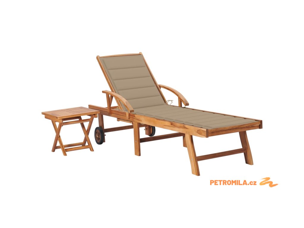 Zahradní lehátko se stolkem a poduškou masivní teak