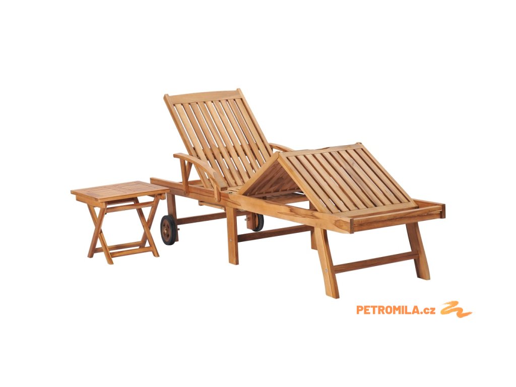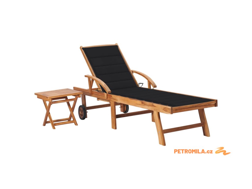 Zahradní lehátko se stolkem a poduškou masivní teak