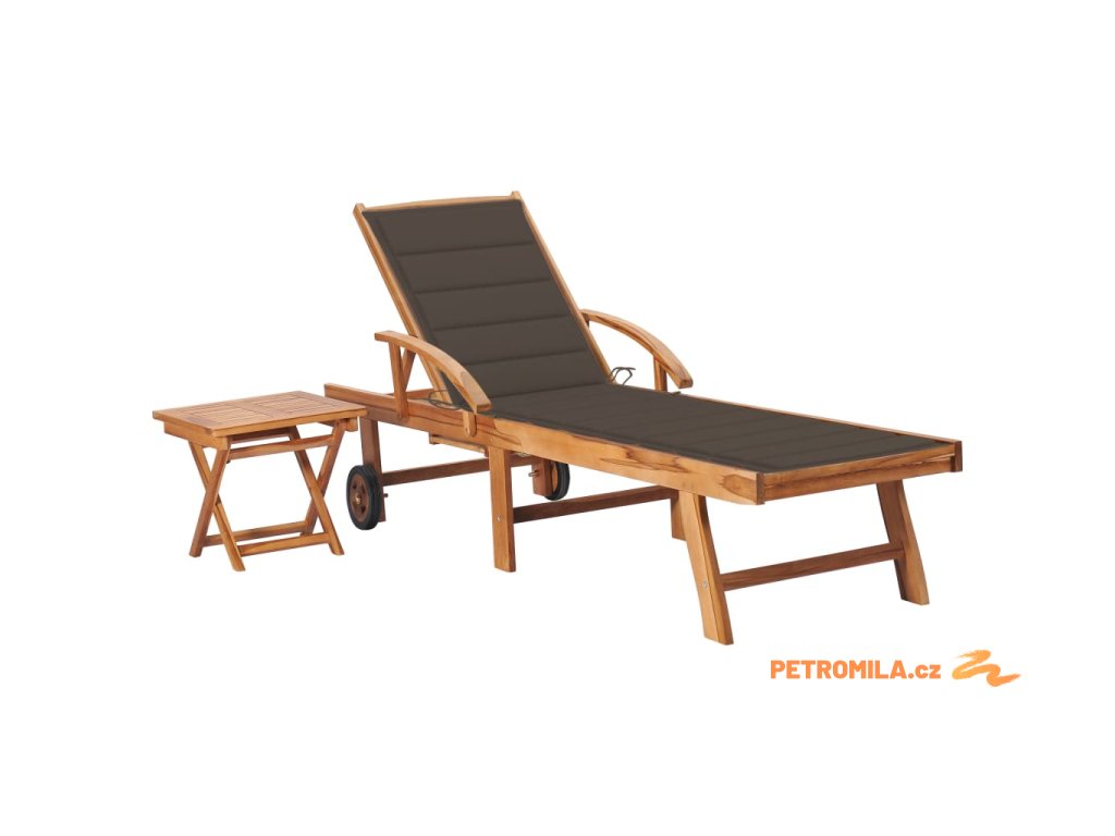 Zahradní lehátko se stolkem a poduškou masivní teak