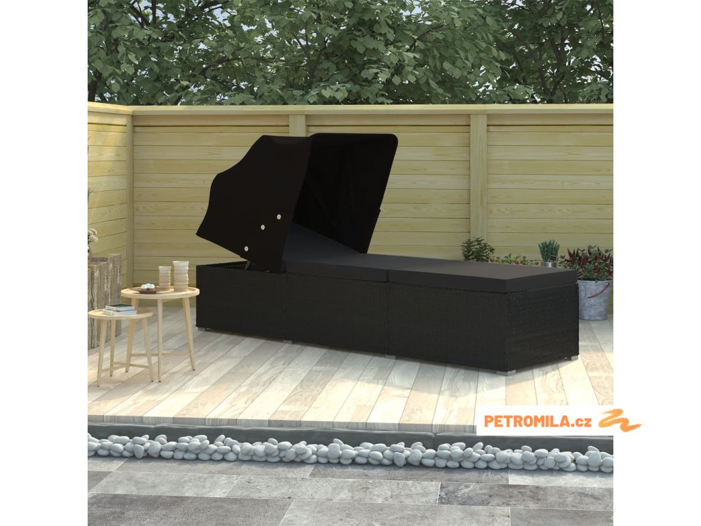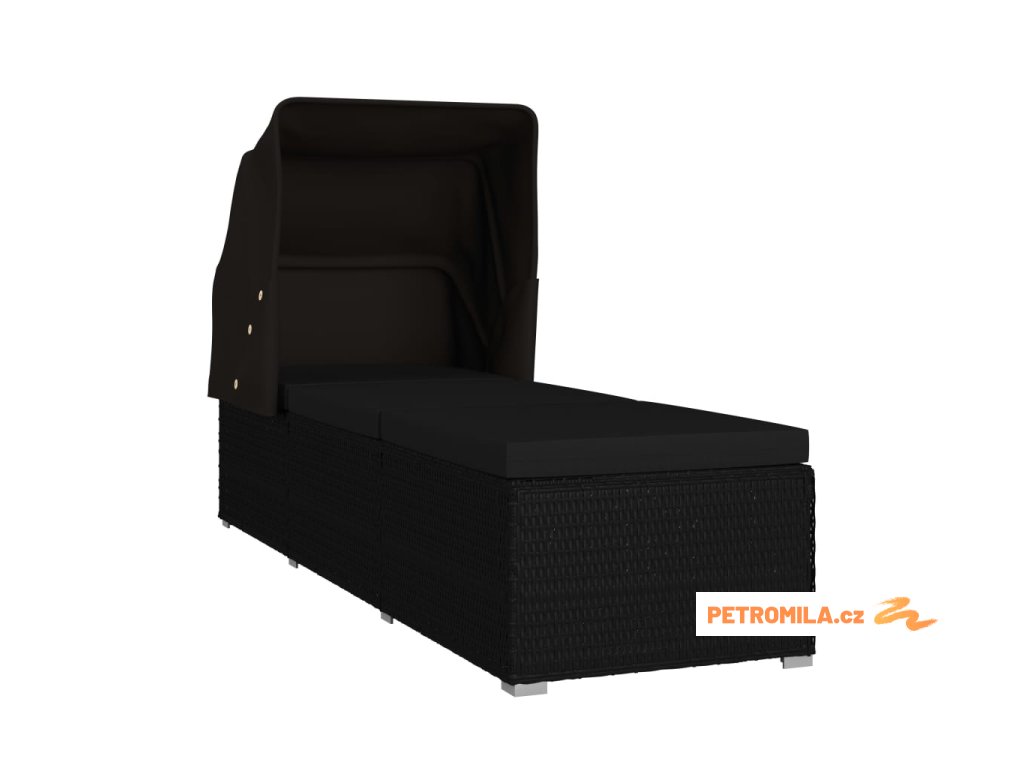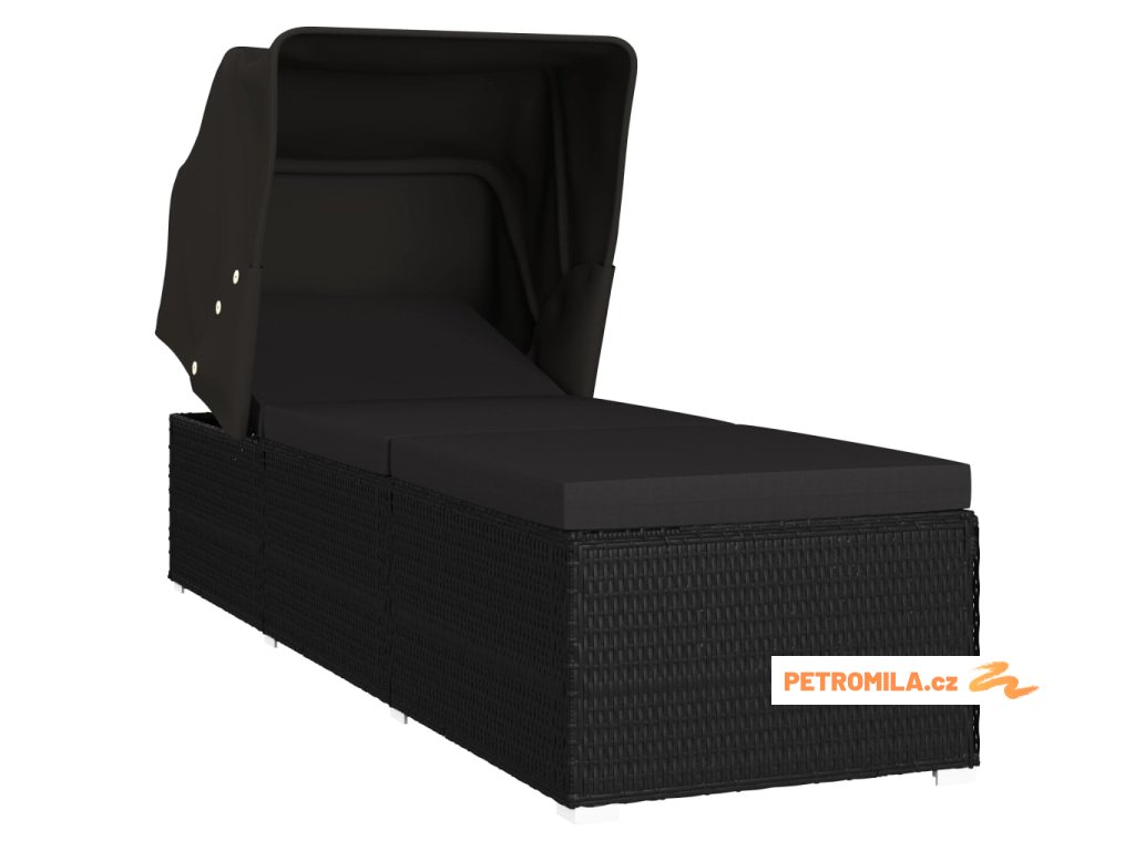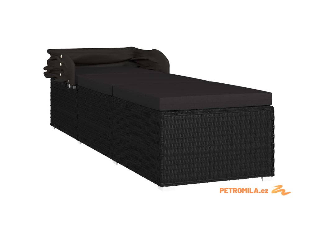 Zahradní lehátko se stříškou a poduškou polyratan černé