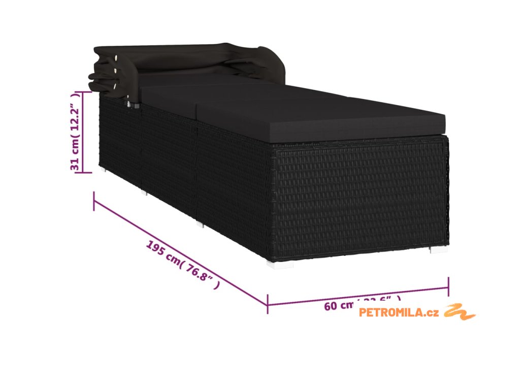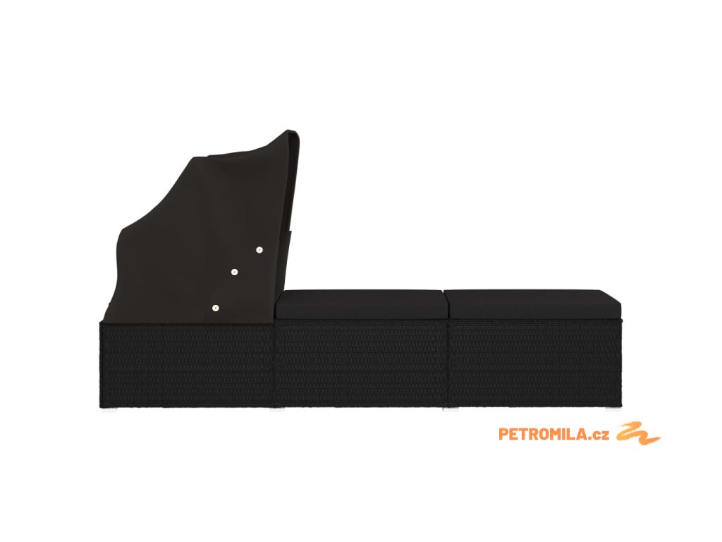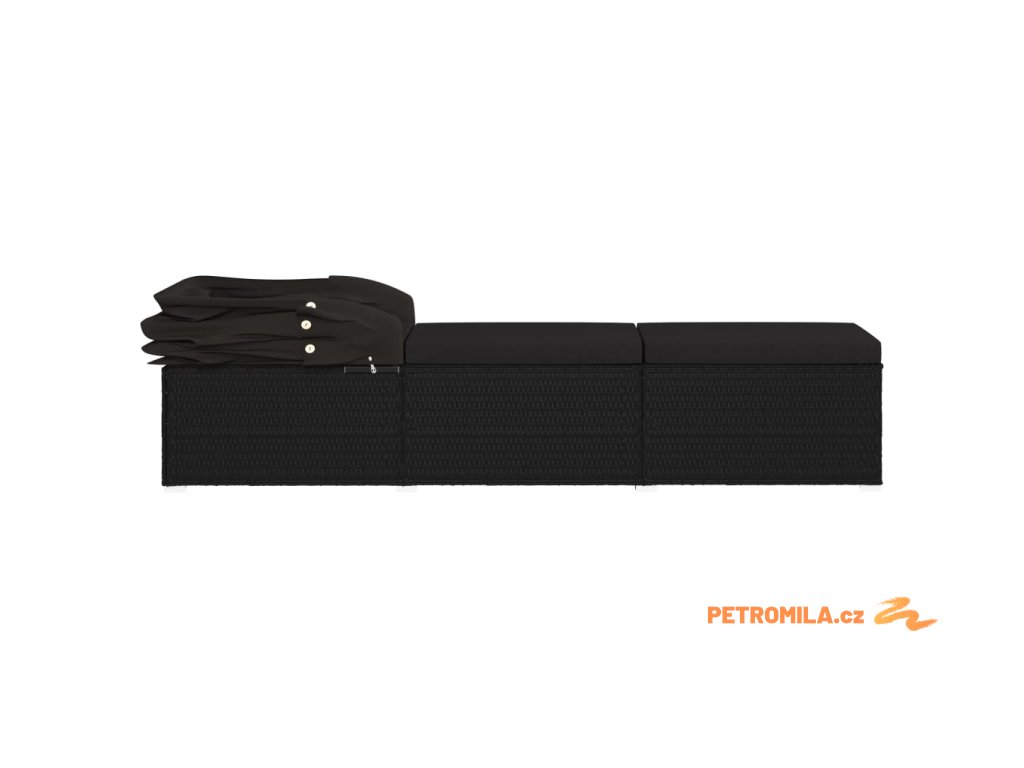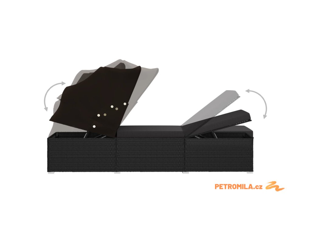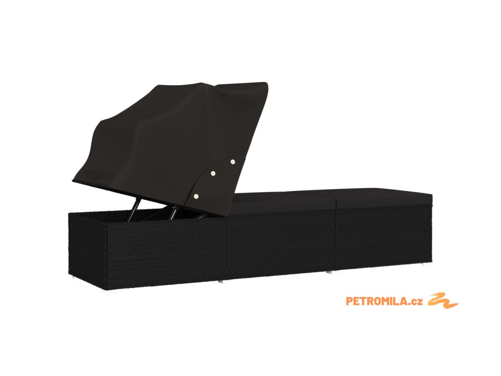 Zahradní lehátko se stříškou a poduškou polyratan černé