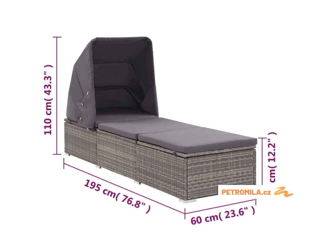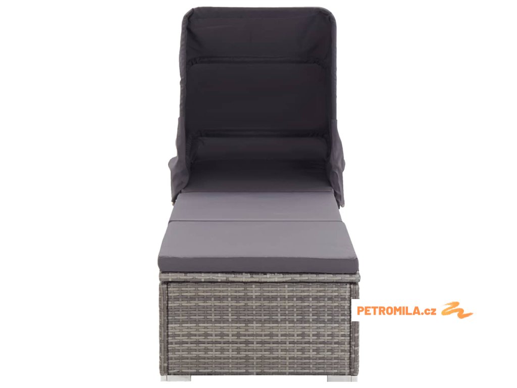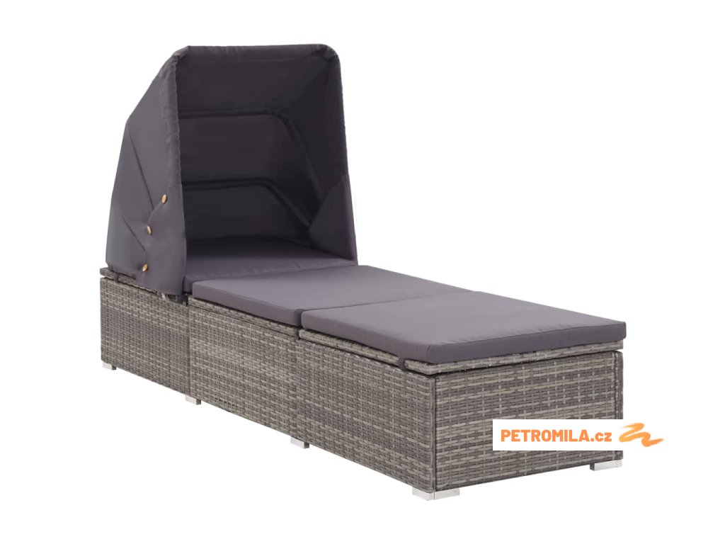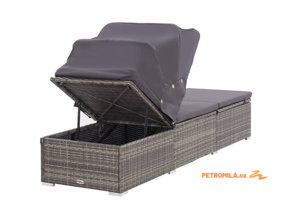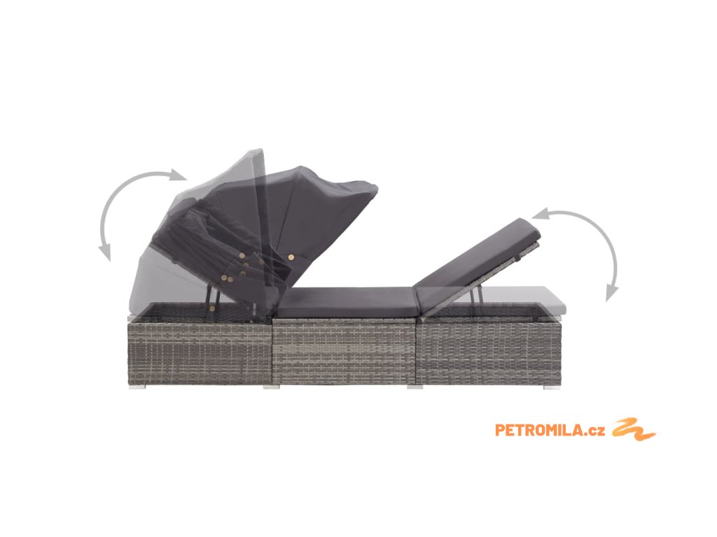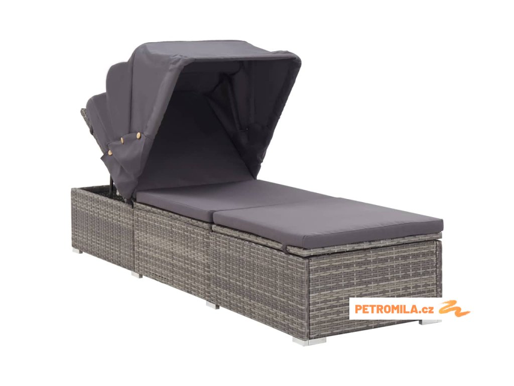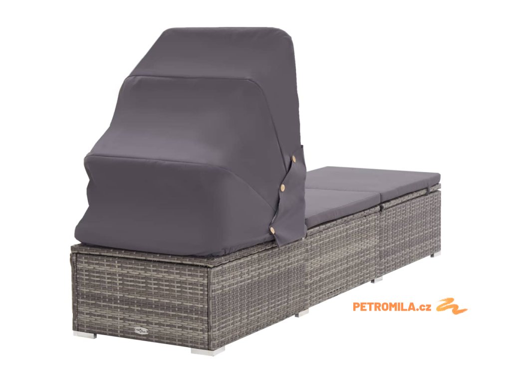 Zahradní lehátko se stříškou a poduškou polyratan šedé