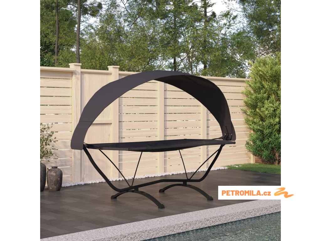 Zahradní lehátko se stříškou černé ocel a oxfordská látka