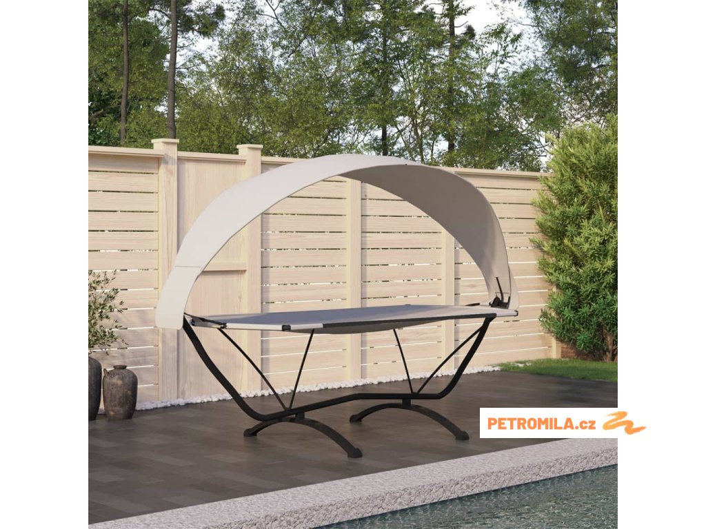 Zahradní lehátko se stříškou krémové ocel a oxfordská látka