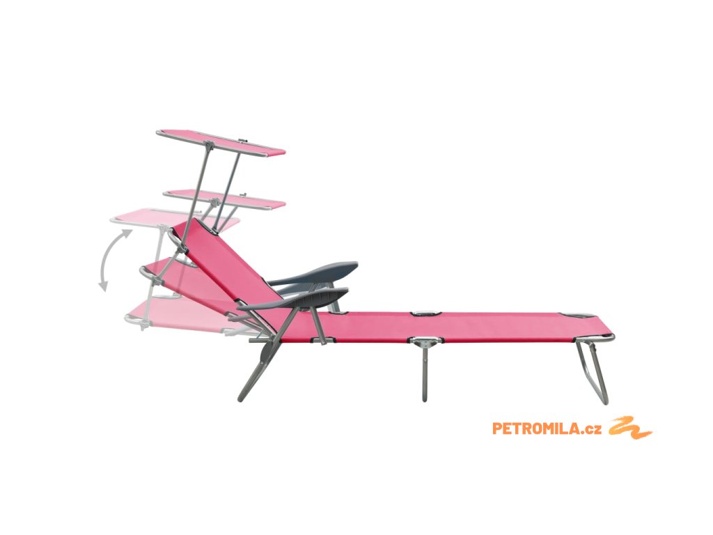 Zahradní lehátko se stříškou ocel růžové