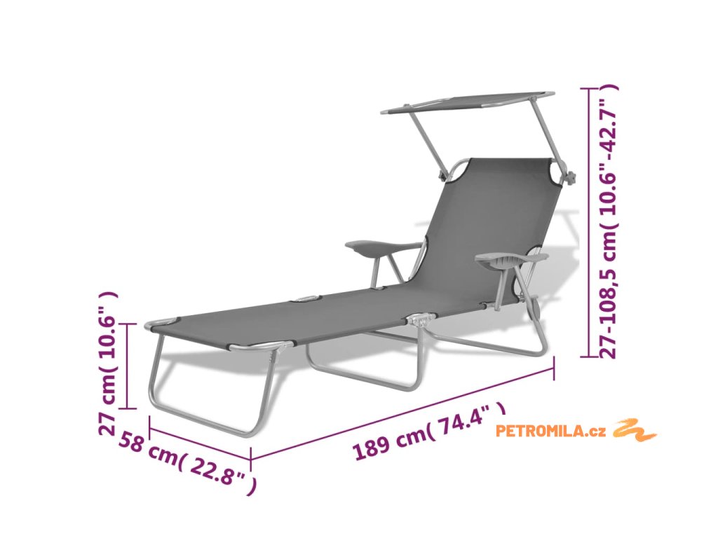 Vysoce kvalitní skládací lehátko je vybaveno nastavitelnou stříškou, takže si už nikdy nebudete muset při opalování dělat starosti z oslnění sluncem. Opěradlo je nastavitelné, a proto můžete vždy najít tu nejpohodlnější polohu.