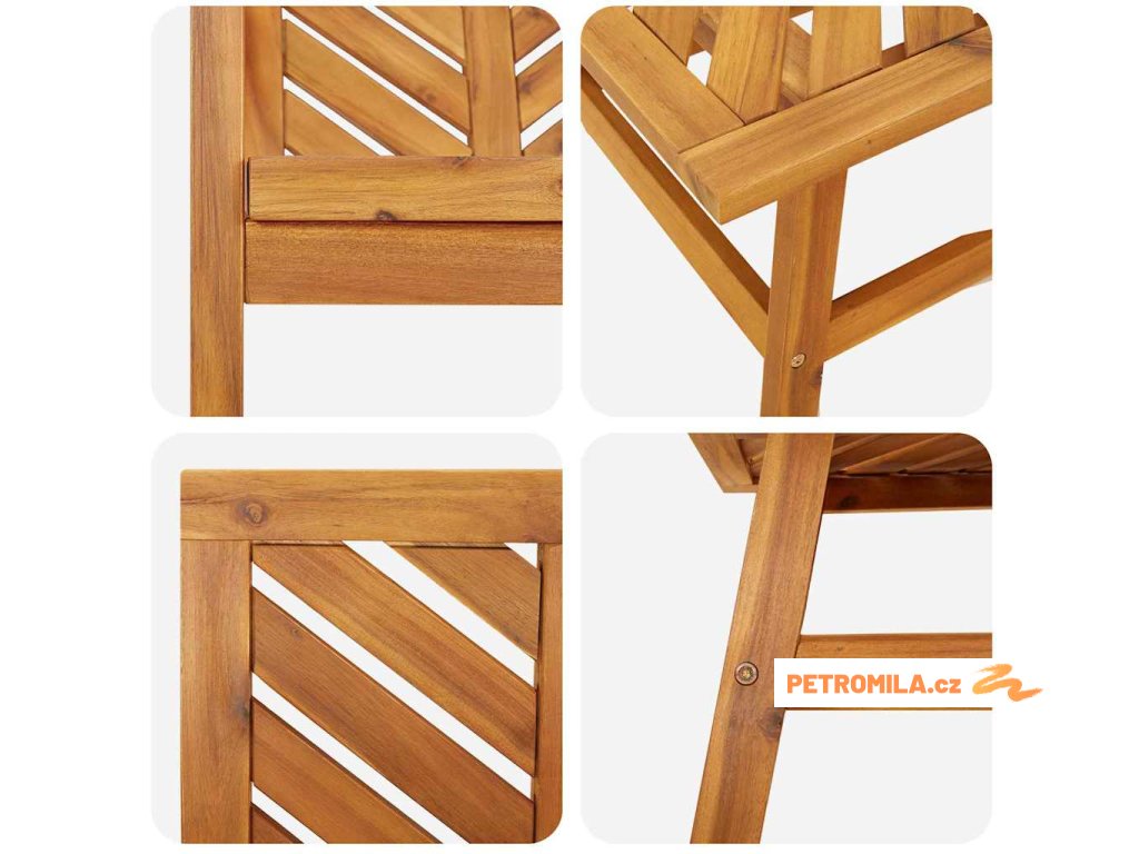 - Kvalitní akáciové dřevo: Tato lounge set je vyrobena z pevného akáciového dřeva, což jí dává přírodní vzhled, který se hodí do každé zahrady nebo terasy. Je dostatečně odolná na to, aby zvládla povětrnostní podmínky, což z ní dělá skvélou volbu pro venkovní zábavu.
