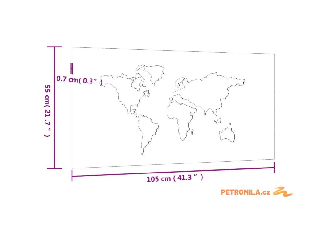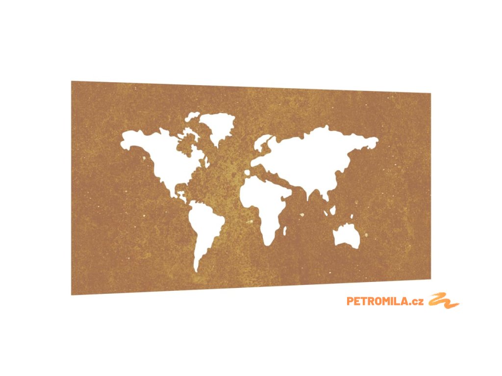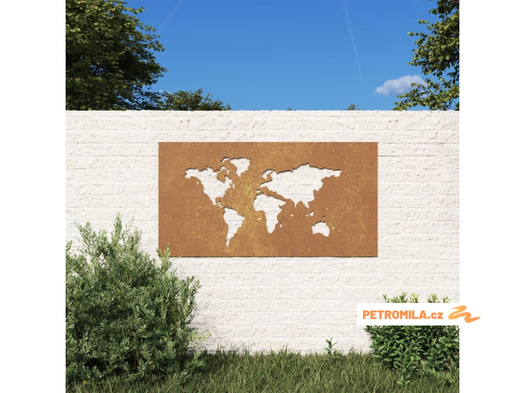 Zahradní nástěnná dekorace 105x55 cm cortenová ocel Mapa světa