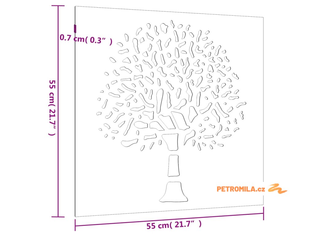 Zahradní nástěnná dekorace 55 x 55 cm cortenová ocel Strom
