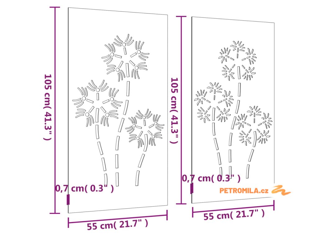 Zahradní nástěnné dekorace 2 ks 105x55cm cortenová ocel Květina