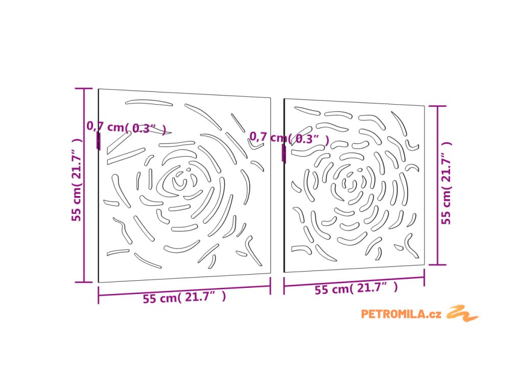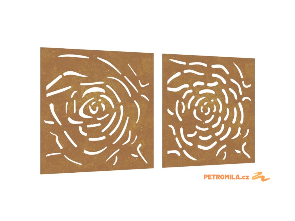 Zahradní nástěnné dekorace 2 ks 55 x 55 cm cortenová ocel Růže