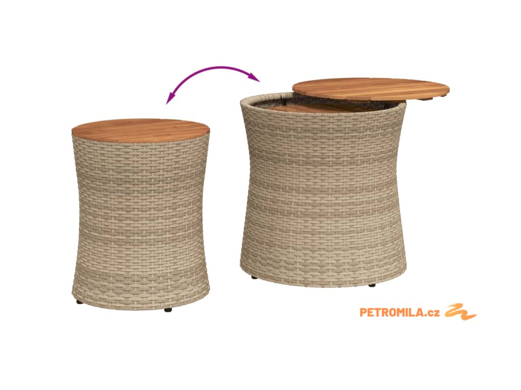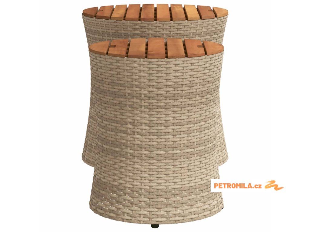 Zahradní odkládací stolky 2 ks dřevěná deska béžové polyratan