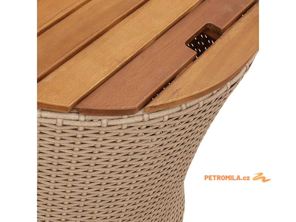 - Materiál: PE ratan, práškově lakovaná ocel, masivní akáciové dřevo s olejovou povrchovou úpravou