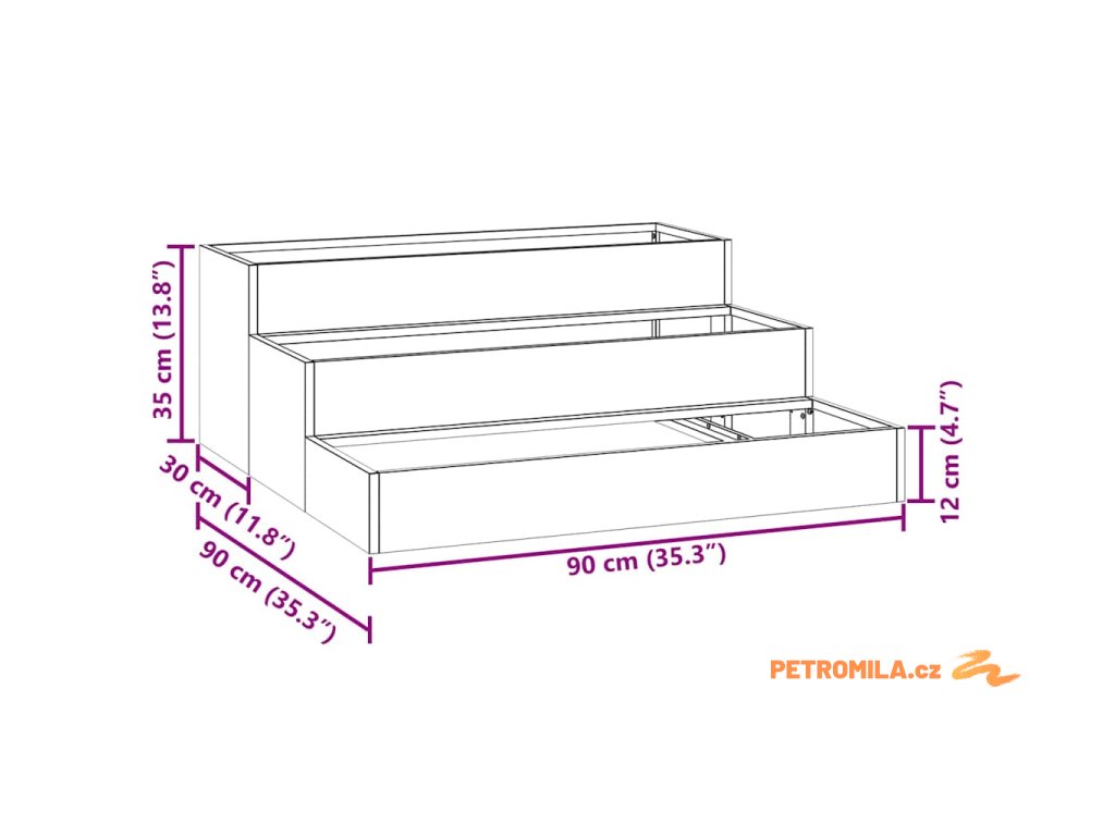 - Celkové rozměry: 90 x 90 x 35 cm (D x Š x V)